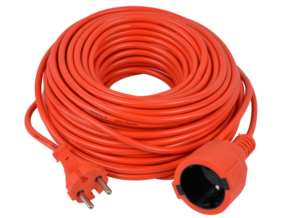 Przedłużacz do zasilania urządzeń elektrycznych i ogrodowych o długości 20 metrów.