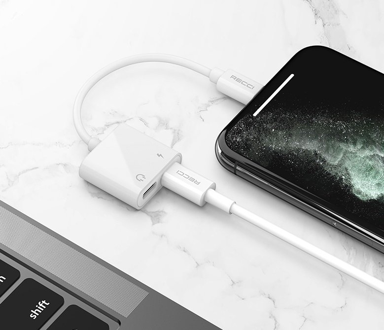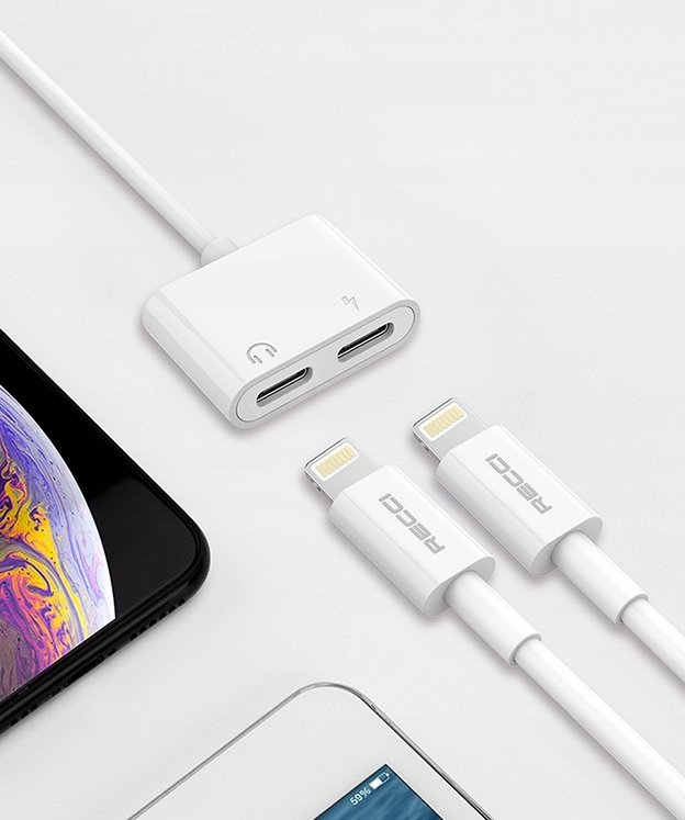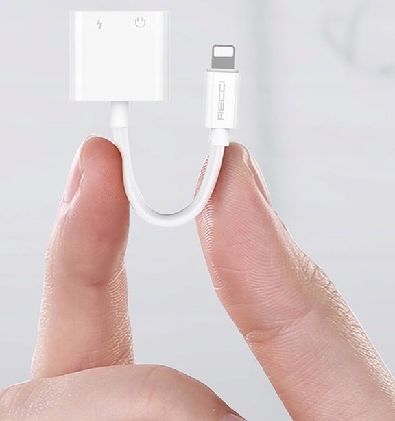 PRZEJŚCIÓWKA ADAPTER SŁUCHAWEK DO IPHONE 2X LIGHTNING RECCI
