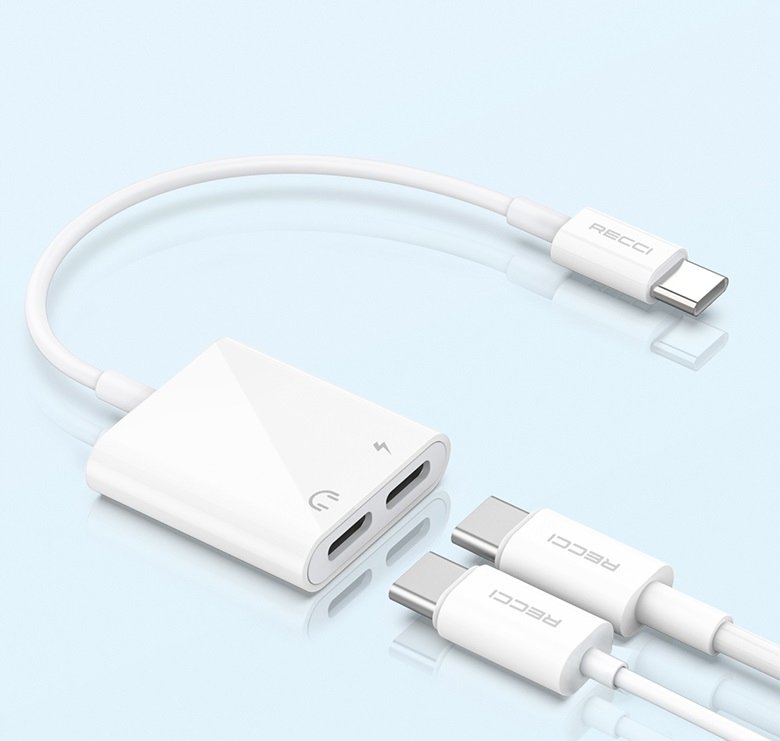 PRZEJŚCIÓWKA ADAPTER USB-C 2X USB C DO SŁUCHAWEK RECCI