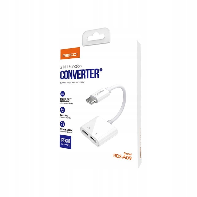 PRZEJŚCIÓWKA ADAPTER USB-C 2X USB C DO SŁUCHAWEK RECCIChcesz zwiększyć możliwości swojego telefonu i ułatwić sobie życie ?Ten adapter idealnie sprawdzi się jako twój codzienny kompan.✅ umożliwia: ...