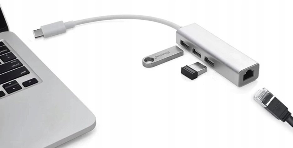 Właśnie zrecenzowałem Przejściówka HUB USB-C Fast Ethernet 3x USB 3.0 RJ45 Adapter Kabel RJ-45