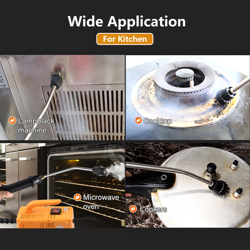 【360° Głębokie czyszczenie】 Wyposażony w przedłużoną dyszę parową o długości 2,5 m i dyszę kolankową, które łączą parę o wysokiej temperaturze, aby dotrzeć do ciasnych i trudno dostępnych miejsc, zapewniając dokładne czyszczenie.