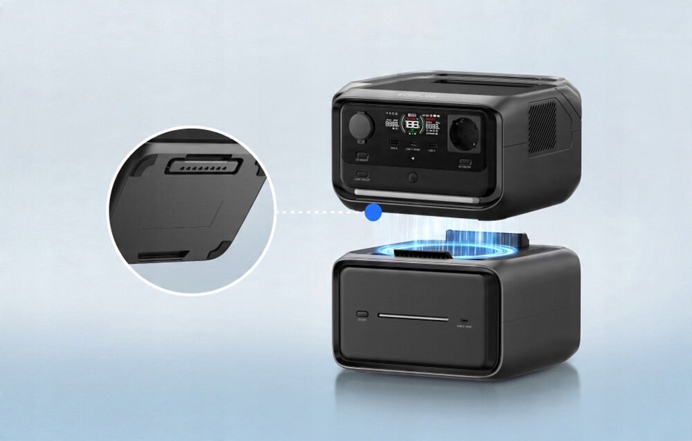 Inne UPS< 10 msDodatkowy akumulatorB600 (572 Wh)AplikacjaEcoFlow, połączenie przez Wi-Fi i BluetoothPoziom hałasuOk. 30 dBKlasa szczelnościIP54 (tylko akumulator, cała stacja nie jest wodoodporna)
