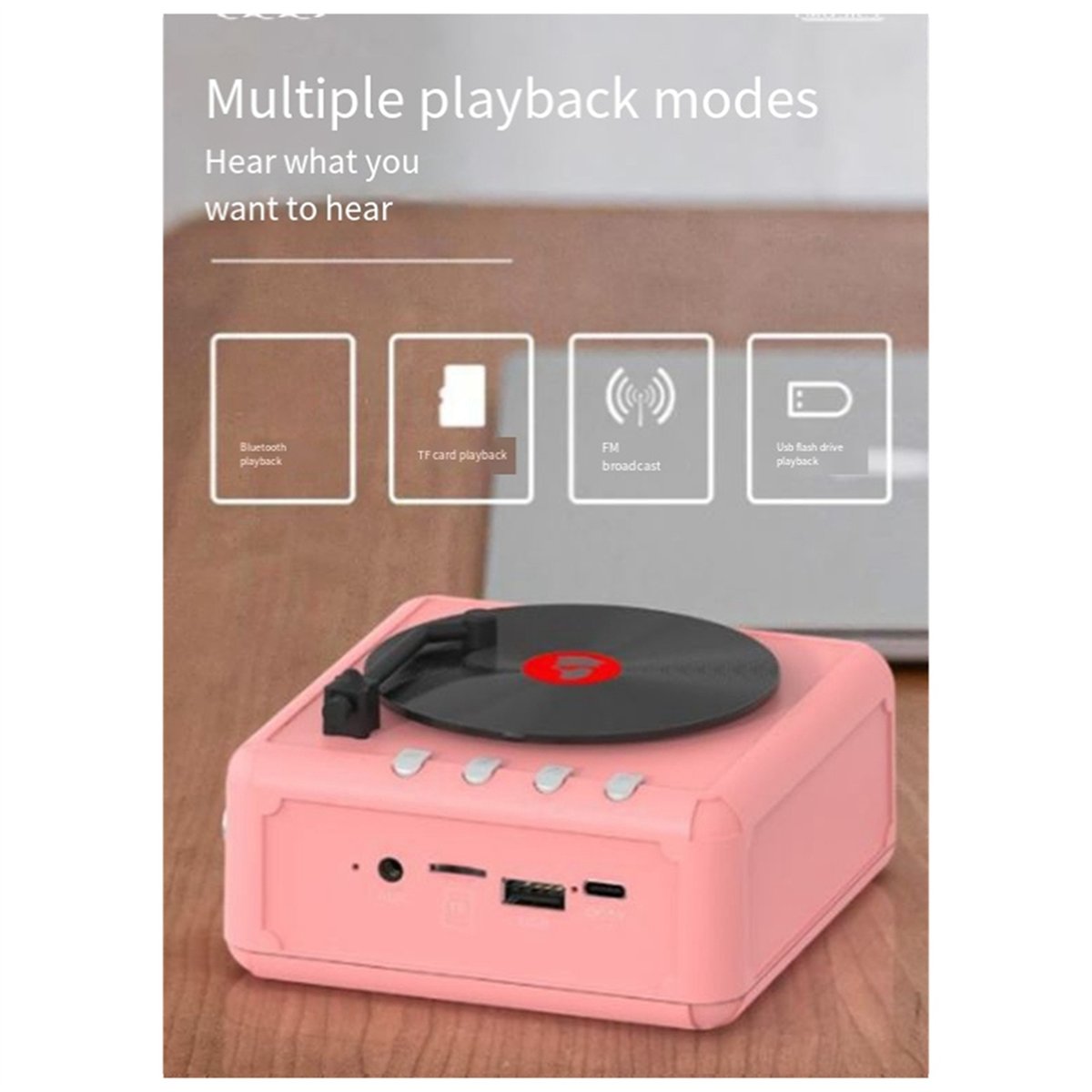 1. Mały głośnik gramofonowy w stylu retro 2. Niewielki rozmiar, duża głośność, wygląd retro, przyjemny dla oka 3. Górna część przyjmuje fizyczny przycisk, 4. Wiele trybów odtwarzania, aby słuchać tego, co chcesz 5. Długa żywotność baterii, nieprzerwana przyjemność słuchania muzyki Moc wyjściowa: 5 W Wymagania dotyczące ładowania: USB DC 5 V Rozmiar głośnika: 45 mm Pojemność baterii: 800 mAh Stosunek sygnału do szumu: ≥87 dB Zakres odpowiedzi częstotliwościowej: 20 Hz ~ 20 kHz Czułość: 1000 mV Kolor: różowy Materiał: plastik Zawartość opakowania 1 x audio 1 x kabel do transmisji danych Tylko powyższa zawartość opakowania, inne produkty nie są dołączone. Uwaga: Odbicie światła i różne wyświetlacze mogą spowodować, że kolor przedmiotu na zdjęciu będzie trochę inny niż w rzeczywistości. Dopuszczalny błąd pomiaru wynosi +/- 1-3 cm.