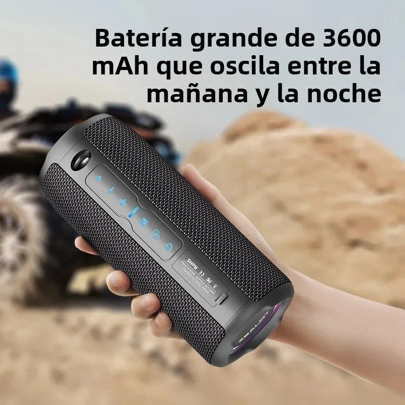 Zaawansowana łączność Bluetooth Technologia Bluetooth 5.2 zapewnia doskonałą rozdzielczość, stabilne strumieniowanie i szeroką kompatybilność. Głośnik Bluetooth o dużej mocy. Ciesz się potężnym dźwiękiem o mocy wyjściowej 20 W, gwarantującym wciągające wrażenia na każdą okazję. Wodoodporna konstrukcja. Wodoodporność IPX6 sprawia, że głośnik idealnie nadaje się do aktywności na świeżym powietrzu lub na wypadek przypadkowego zalania. Bezprzewodowe parowanie dwóch urządzeń. Podłącz dwa urządzenia jednocześnie, aby cieszyć się prawdziwie bezprzewodową swobodą słuchania. Wytrzymała bateria. Ciesz się do 10 godzinami ciągłego odtwarzania dzięki wytrzymałej baterii o pojemności 3600 mAh.