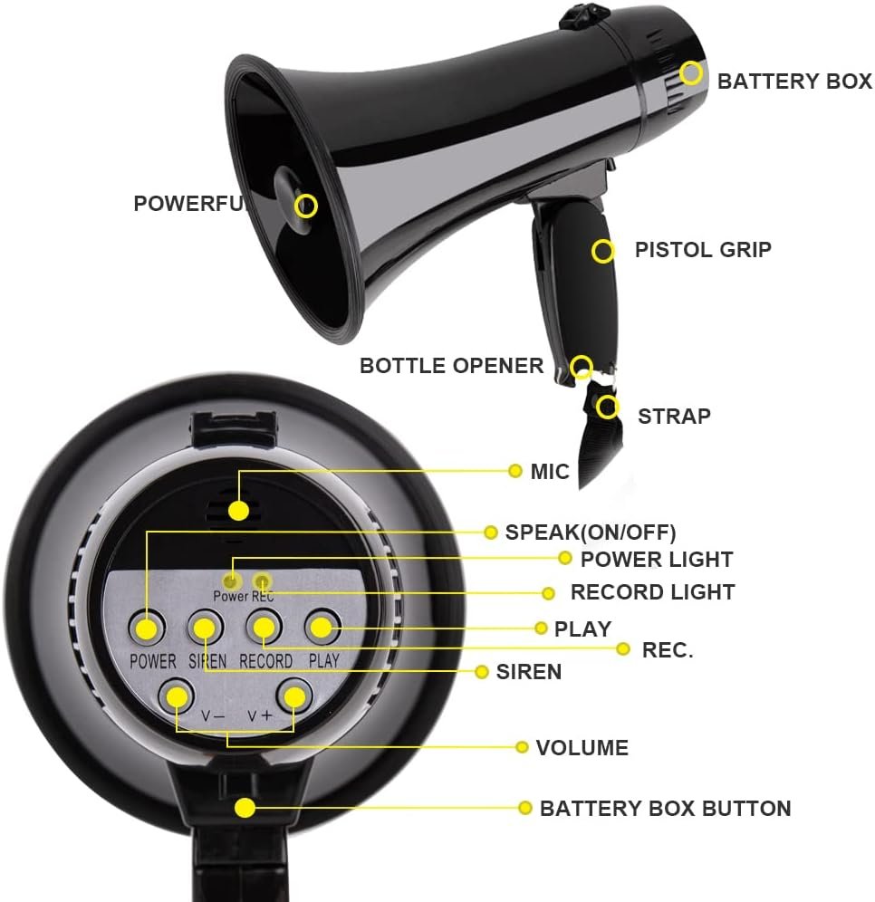 KOMPAKTOWY, PRZENOŚNY I MOCNY – Ten lekki megafon z syreną oferuje moc 25 watów i zasięg ok. 1/4 cala, dzięki czemu możesz ogłosić ważne wydarzenie na imprezach sylwestrowych, grillach, urodzinach dzieci, imprezach sportowych i wielu innych.