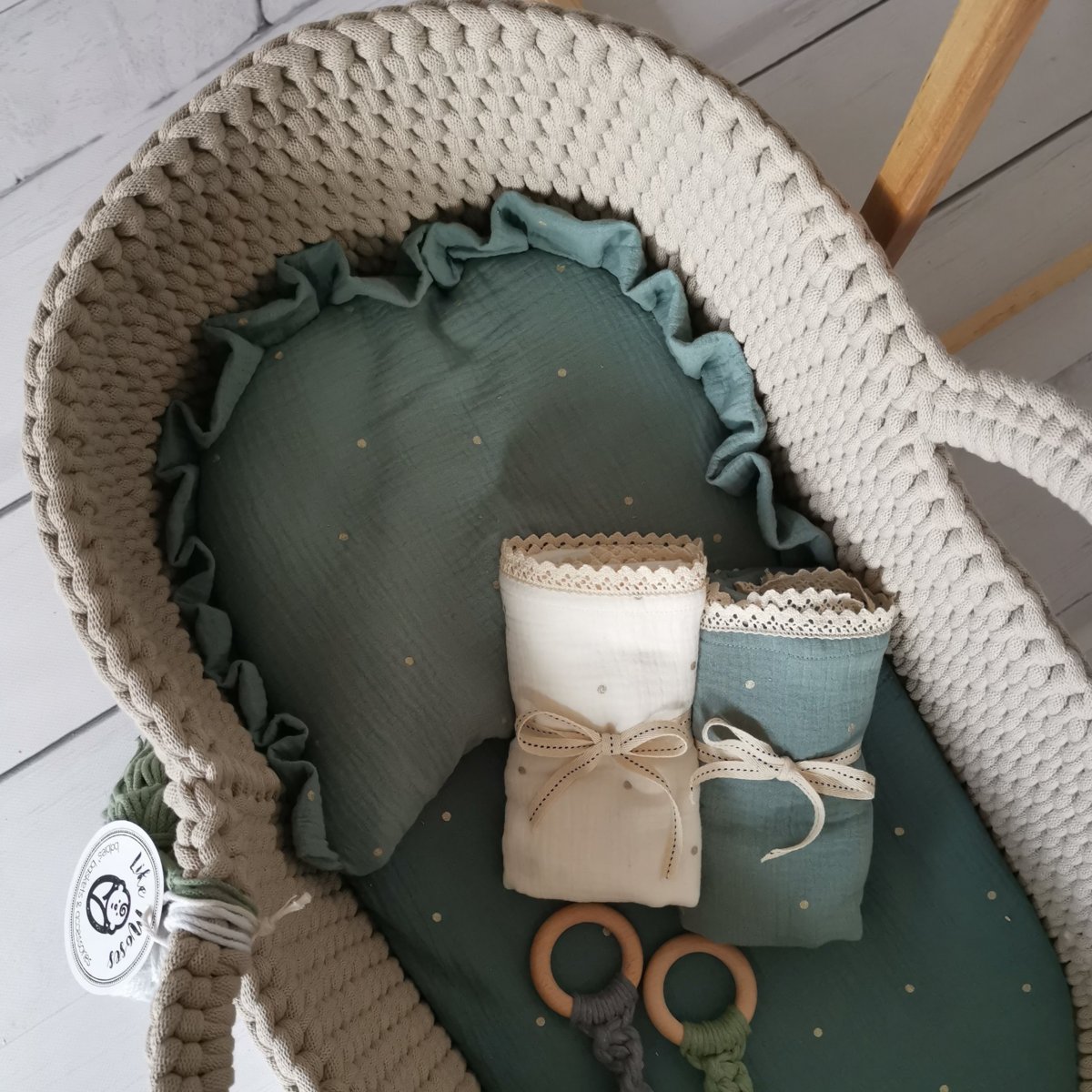 Właśnie zrecenzowałem Prześcieradło muślinowe do kosza mojżesza / gondoli z gumką- ZIELONE W ZŁOTE KROPKI