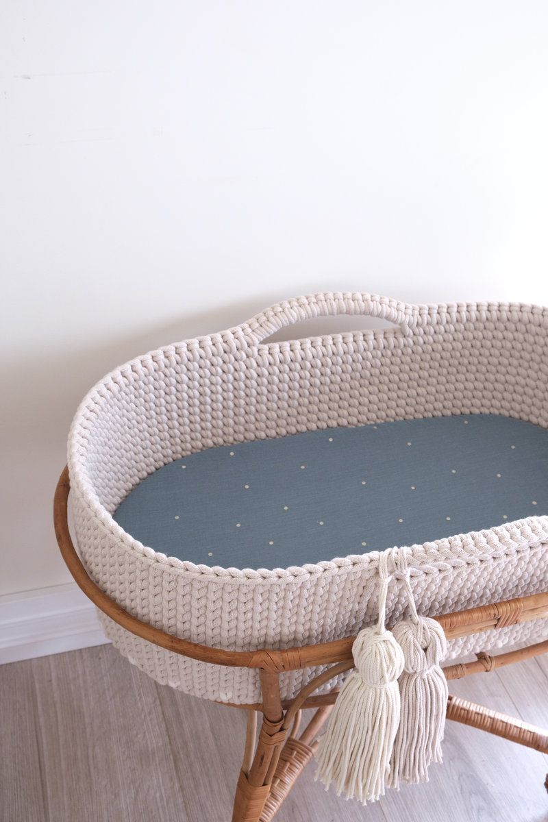 Prześcieradła do koszy Mojżesza/gondoli z bawełnianego Muślinu Double Gauze.Odpowiednie do materaca o wymiarach: 75x35 cm (+/- 2 cm). Prześcieradła zostały starannie uszyte we własnej pracowni ...