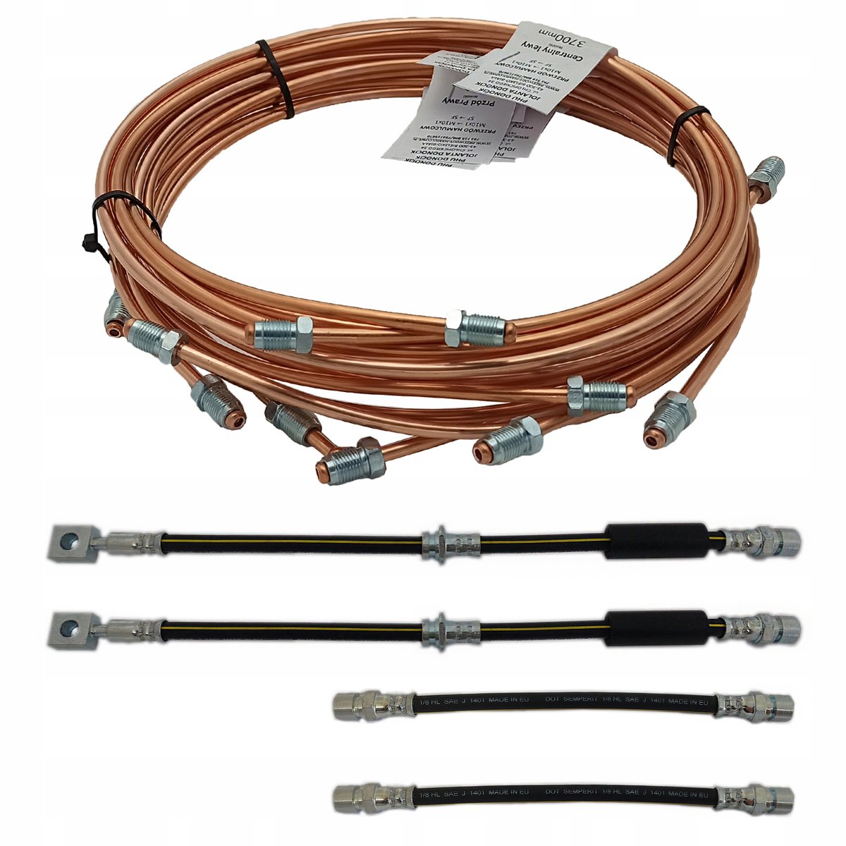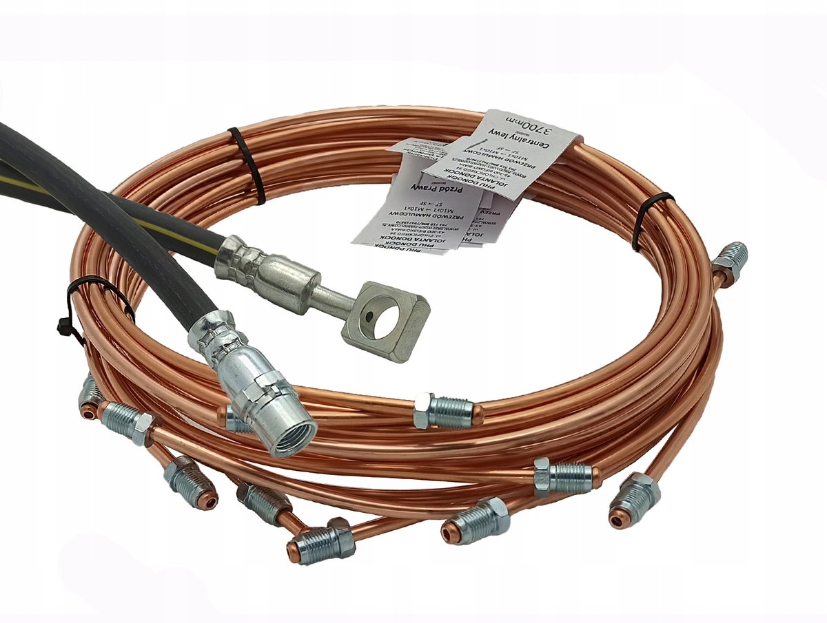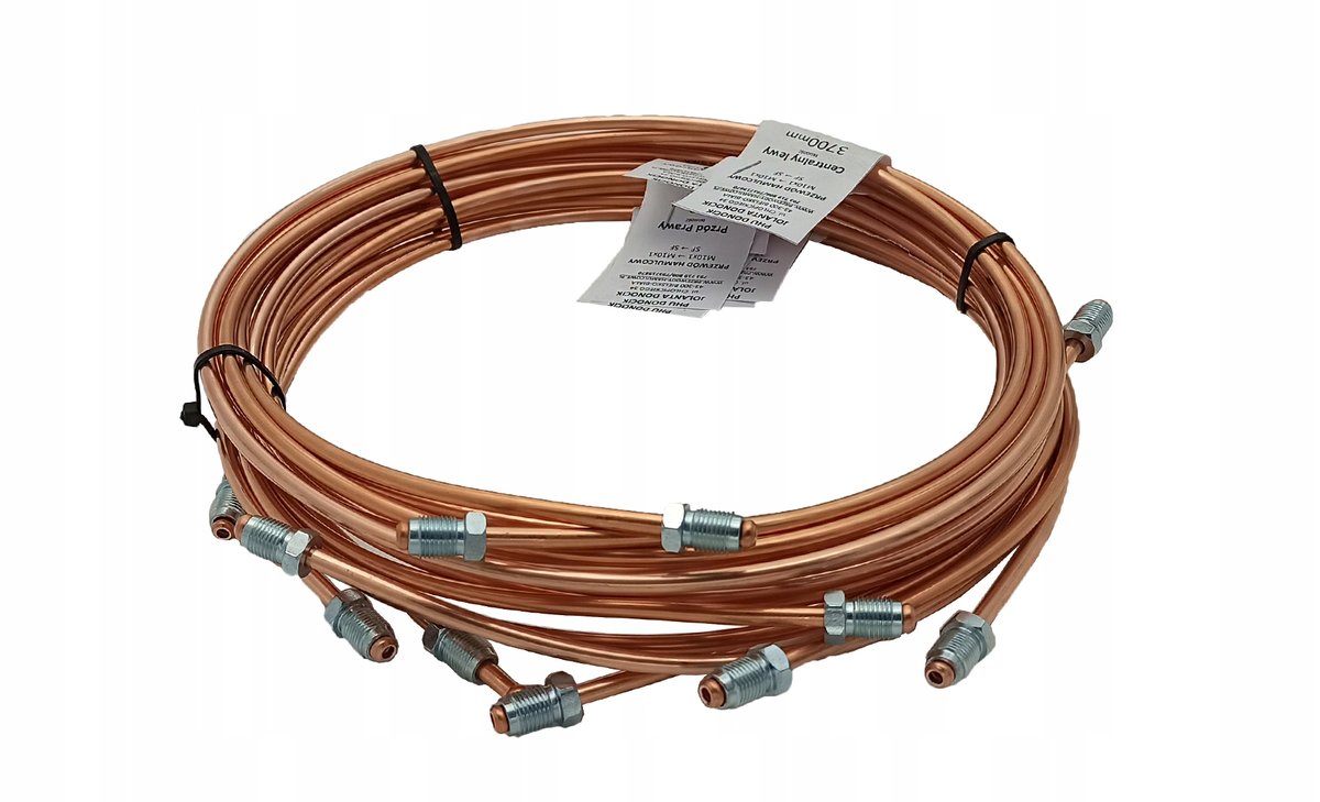 W skład zestawu wchodzi 9 przewodów hamulcowych sztywnych miedzianych: