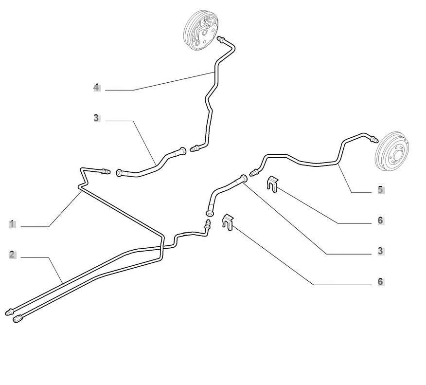 W skład zestawu wchodzą cztery przewody hamulcowe sztywne stalowe ( od łączników na grodzi do osi tylnej )