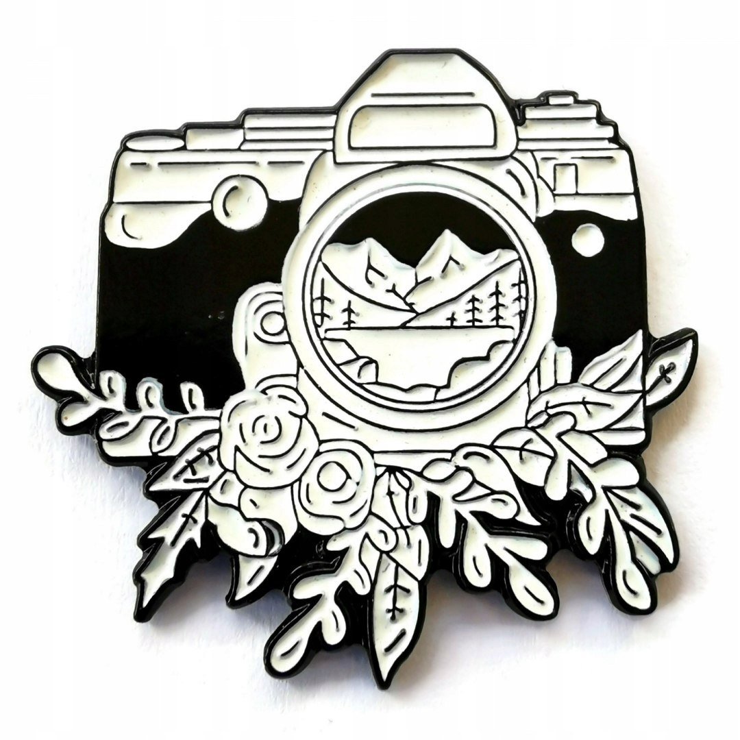 Przypinka Aparat Foto Góry Las Woda Buton Metal Pin 1 Metalowe przypinki to niepozorne dodatki do ubrań, które mimo swoich małych rozmiarów potrafią dodać charakteru każdej stylizacji. Te ...