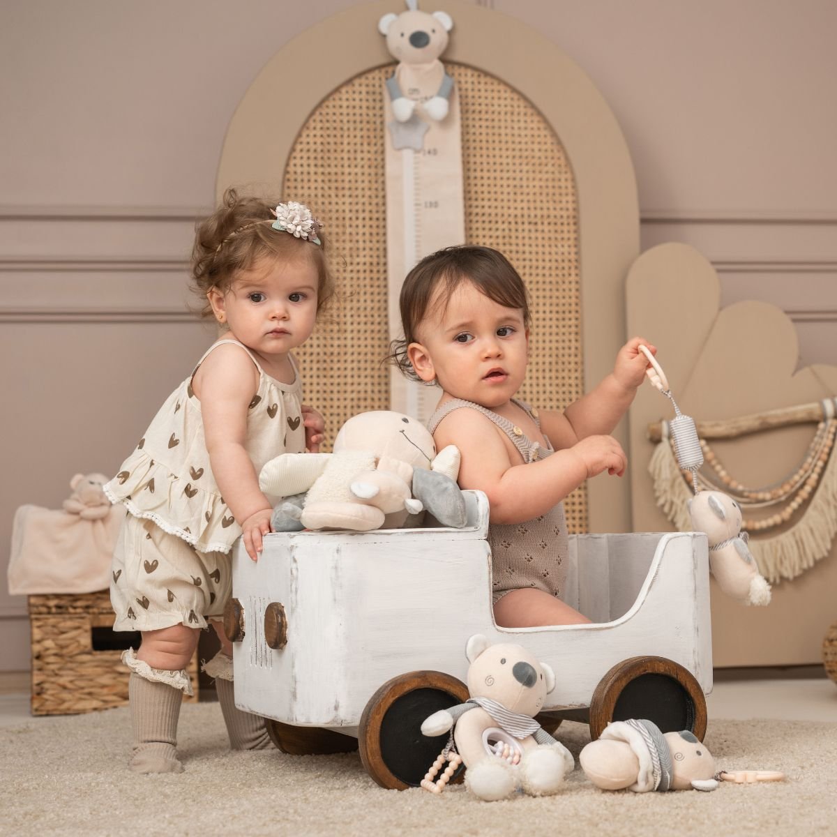 Comforter Bear to subtelny kompan do drzemek i codziennego tulenia. Wykonana z bardzo miękkiego materiału, idealnie sprawdza się jako maskotka uspokajająca — zarówno w domu, jak i poza nim. Bezpieczna dla noworodków i łatwa do utrzymania w czystości — to również świetny prezent.
