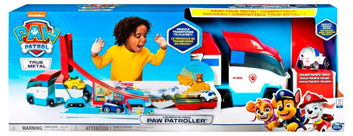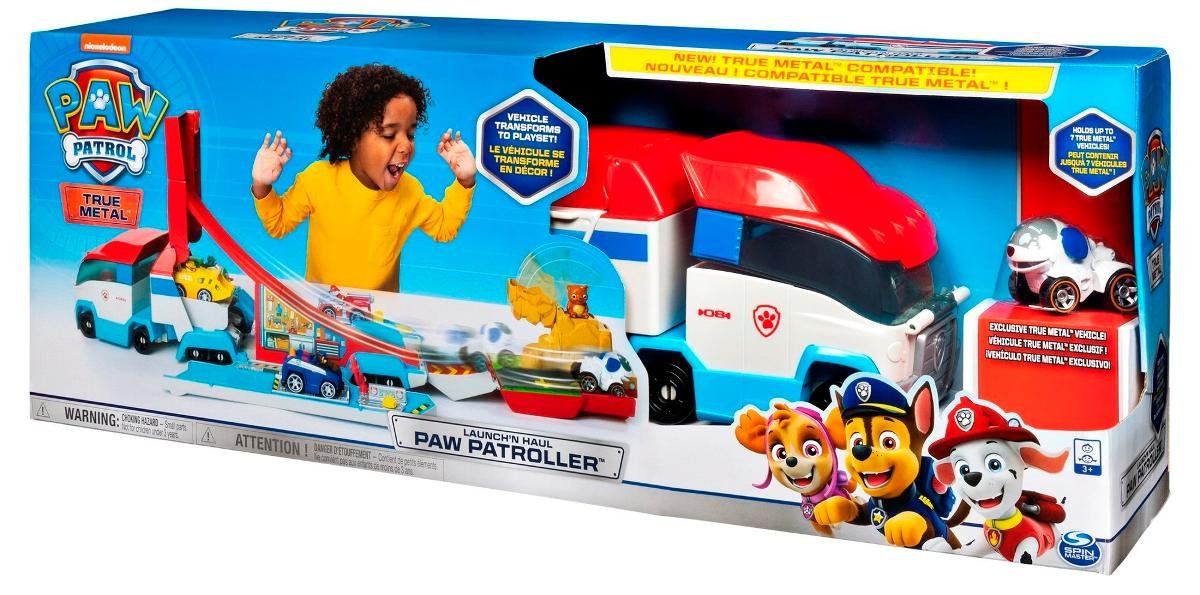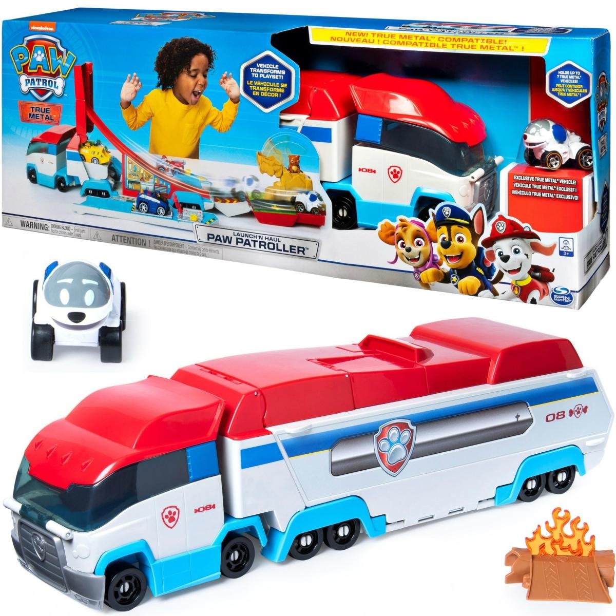 Wszystkie łapki na pokład! Patrolowiec Psiego Patrolu to idealny samochód, umożliwiający przewóz całego zespołu Psiego Patrolu, nawet do nieznanych miejsc. Przechowuj swoje pojazdy Psiego Patrolu z serii True Metal wewnątrz ciężarówki i ruszaj w poszukiwaniu przygód! Ciężarówka pomieści aż 7 pojazdów True Metal.