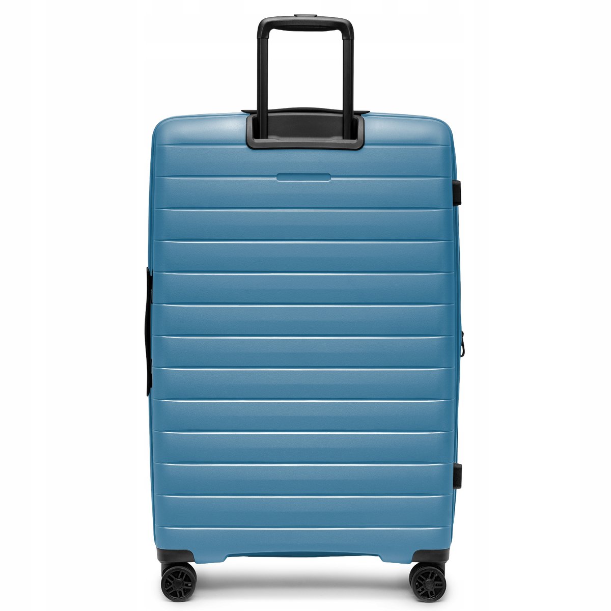 ▶️ Mobilność walizki zapewnia nowoczesny układ jezdny oparty na czterech obrotowych kołach 360° oraz regulowany, stopniowany stelaż, które ułatwiają prowadzenie bagażu nawet po nierównych nawierzchniach.
