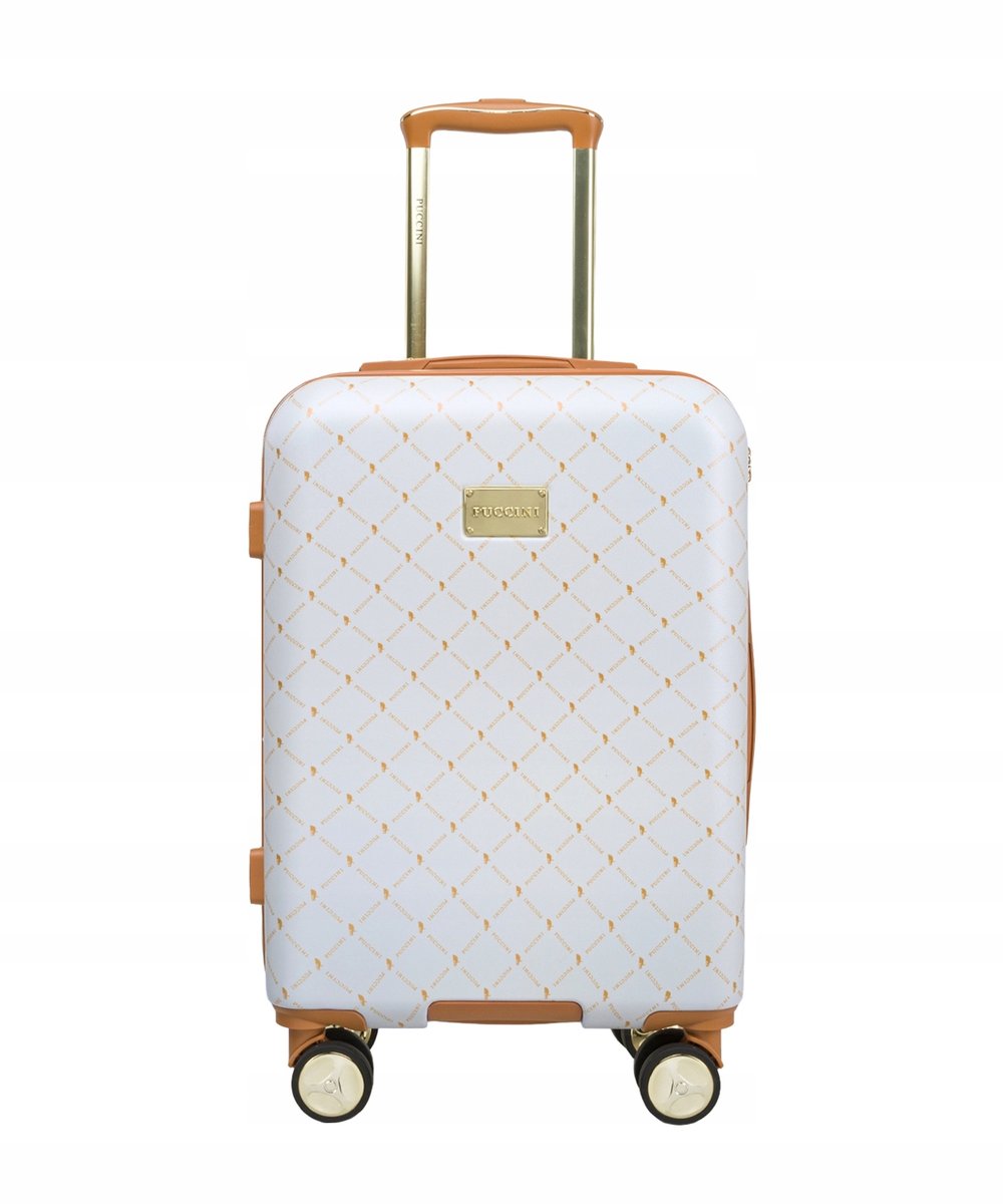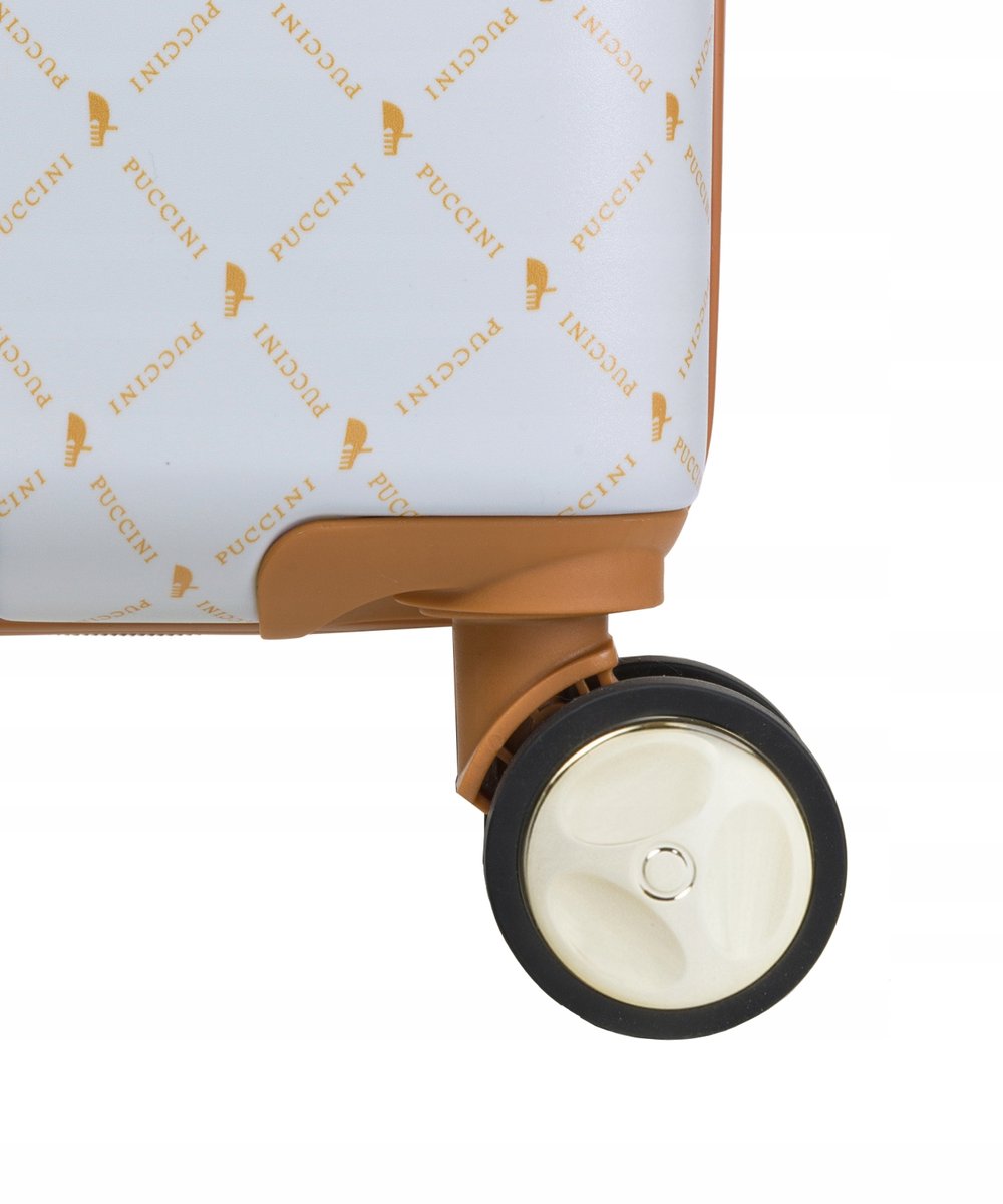 ⏩ Złota blaszka z logo PUCCINI na froncie dodaje elegancji, podczas gdy uchwyty z boku i u góry walizki ułatwiają jej przenoszenie. Stopniowany stelaż z regulacją wysokości rączki oraz zwrotny układ jezdny sprawiają, że manewrowanie walizką jest niezwykle wygodne, nawet na nierównej nawierzchni.