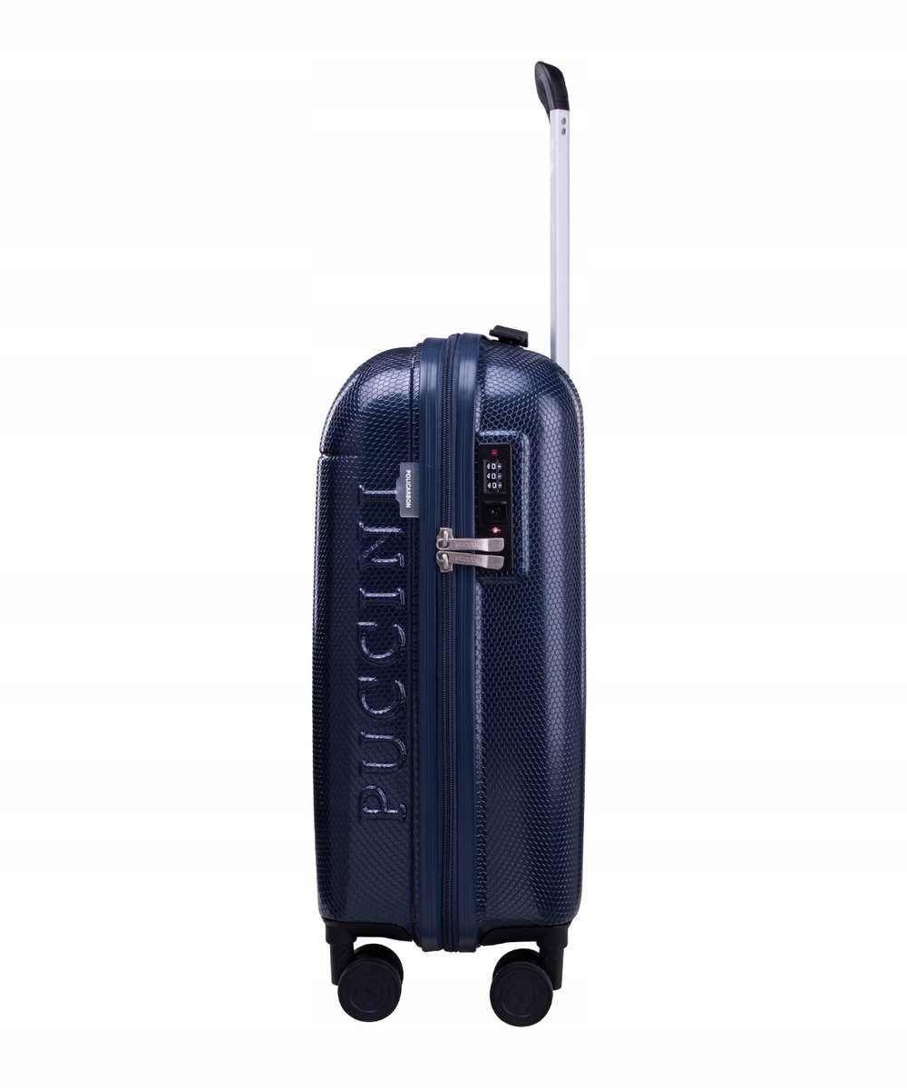 ⏩ Niezwykły design walizek Voyager 2.0 z pewnością zachwyci miłośników podróży. Dbamy o każdy detal - na froncie walizki znajduje się oryginalna blaszka z naszym logo, a z boku widnieje elegancki, wypukły napis PUCCINI. Uchwyt umieszczony u góry walizki, wraz z trzystopniowym stelażem, zapewniają wygodę i łatwość przenoszenia, dostosowując się do Twoich indywidualnych potrzeb.