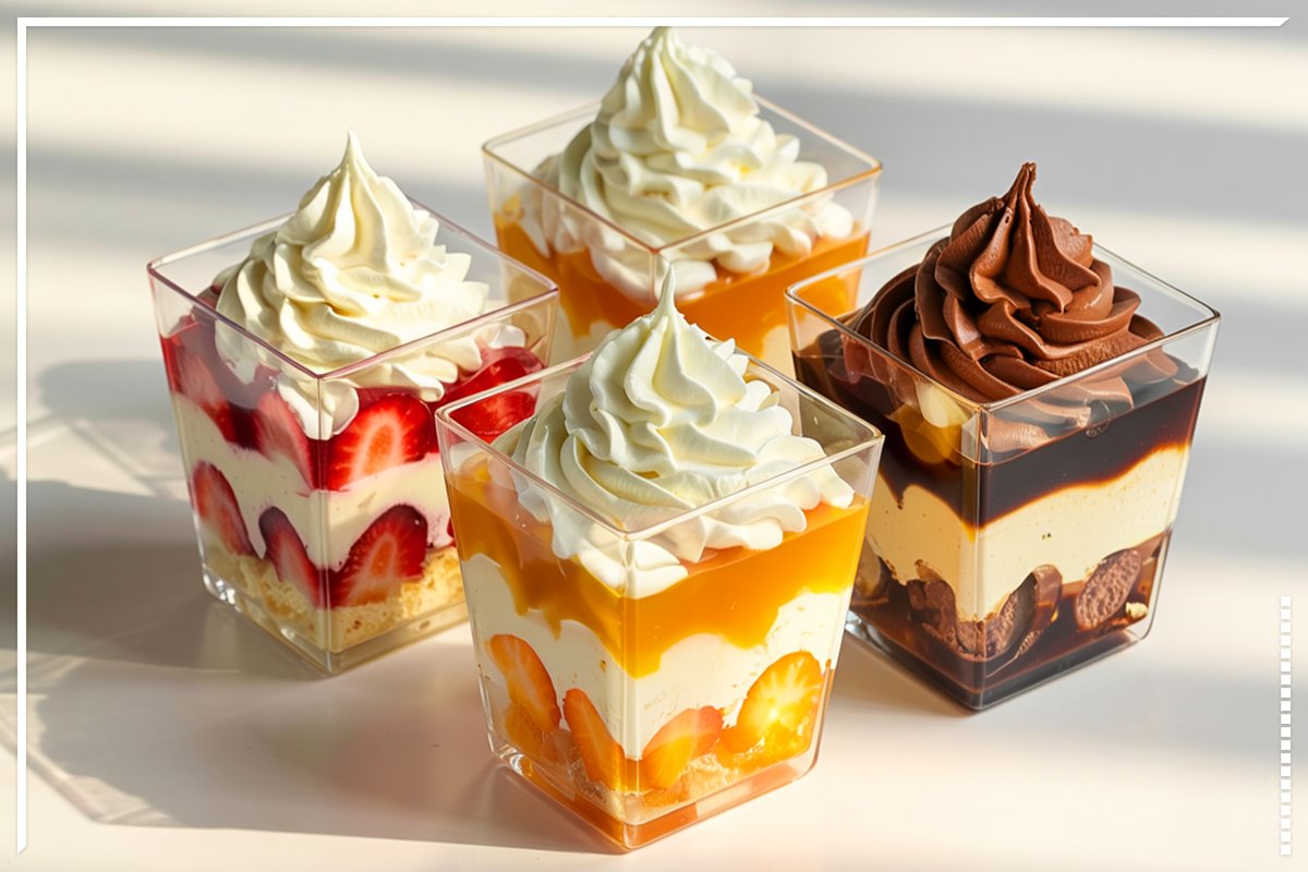 ✅ Przezroczyste – pięknie eksponują warstwowe desery.