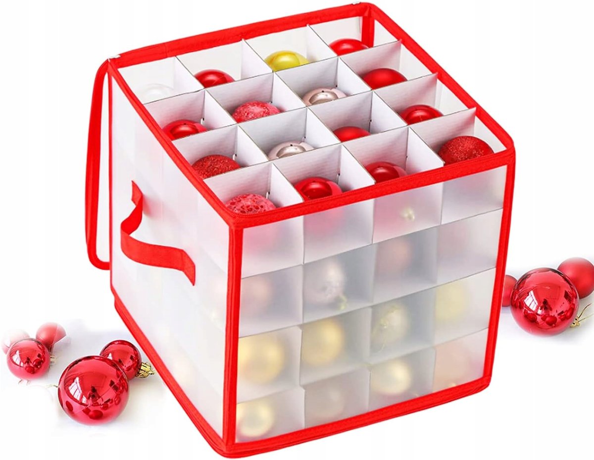 Pudełko pojemnik na bombki ozdoby dekoracje świąteczne 64 przegródki ✨ Przechowywanie bombek i ozdób świątecznych. ✨ Organizacja niestandardowych dekoracji, takich jak figurki, łańcuchy ...