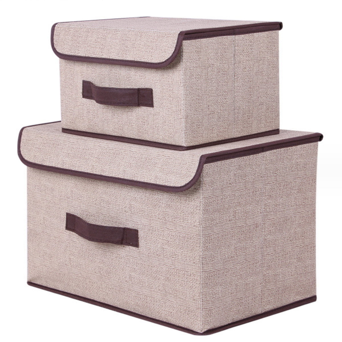 Zestaw składa się z dwóch pudeł z pokrywkami o różnych rozmiarach przeznaczonych do przechowywania ubrań, tekstyliów czy zabawek w dowolnym miejscu w domu, na półkach, w szafie lub garderobie.