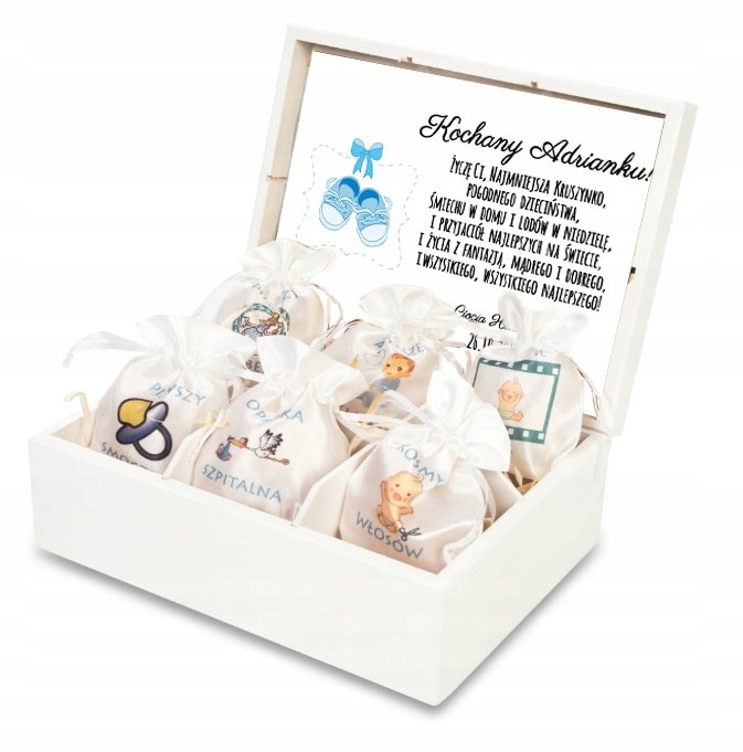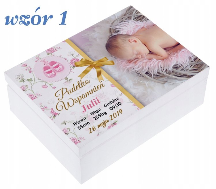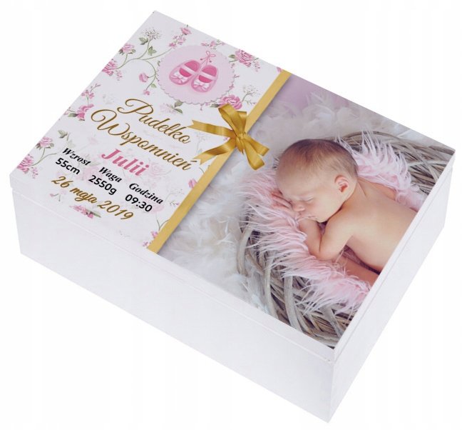 PUDEŁKO WSPOMNIEŃ NA UROCZYSTOŚCI Z TWOIM NADRUKIEM TAKIE JAK:Narodziny dzieckaChrzest świętyPierwszy roczekPudełko wspomnień to idealny pomysł na wyjątkowy prezent i pamiątkę, który będzie ...