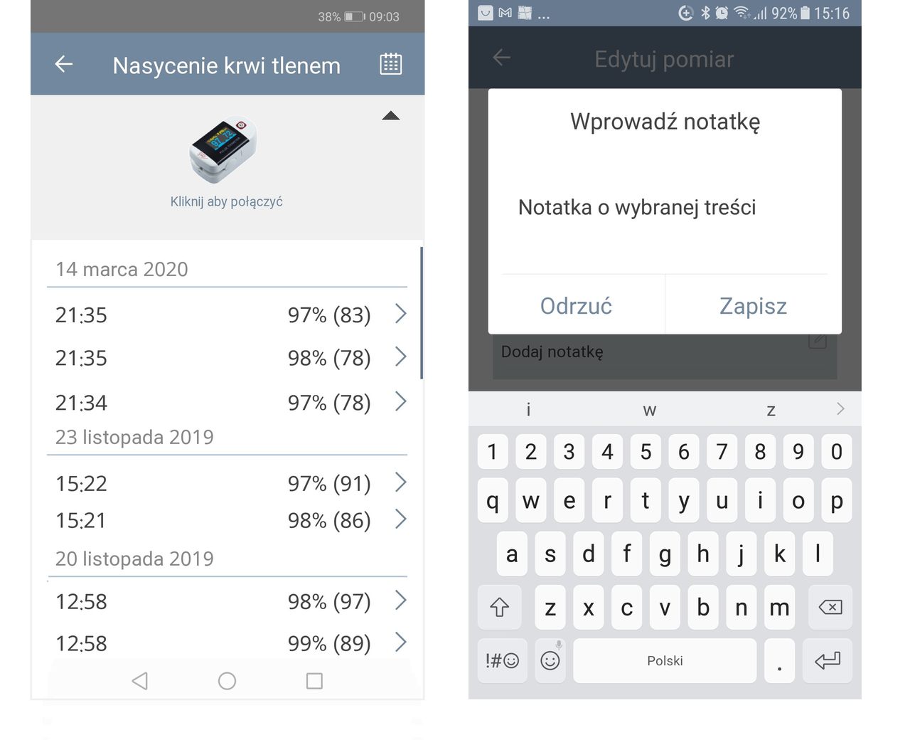Aplikacja MedM Health jest bardzo wygodnym narzędziem do automatycznego zapisywania wyników pomiarów natlenienia krwi i tętna. Dzięki zastosowaniu aplikacji MedM Health możesz zapomnieć o żmudnym ręcznym zapisywaniu wyników. Kompletne wyniki pomiarów masz zawsze ze sobą w Twoim smartfonie. Dzięki aplikacji MedM Health możesz w każdej chwili przesłać kompletną historię swoich pomiarów na wybrany adres e-mail, np. Twojego lekarza, czy członków Twojej rodziny. Każdy wynik pomiaru możesz opisać w taki sposób, aby Twój lekarz otrzymał informację jaki wpływ na wyniki Twoich pomiarów miała zalecona przez niego terapia lekowa.