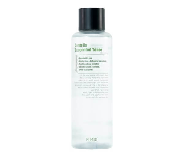 PURITO SEOUL Wonder Releaf Centella Toner Unscented – bezzapachowy toner z ekstraktem z wąkroty azjatyckiej (6,000 ppm). Ekstrakt ten głęboko nawilża, łagodzi oraz wzmacnia barierę ochronną skóry. Dodatek pantenolu i alantoiny pomagają w regeneracji skóry i łagodzeniu podrażnień. Toner nie zawiera olejków eterycznych, odpowiedni dla wszystkich rodzajów skóry, w tym wrażliwej.