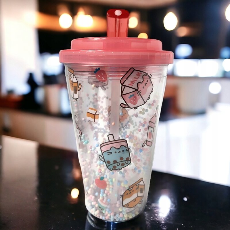 PUSHEEN kubek podróżny ze słomką ustnikiem kot KOTEK KOTY podwójna ścianka SIPS