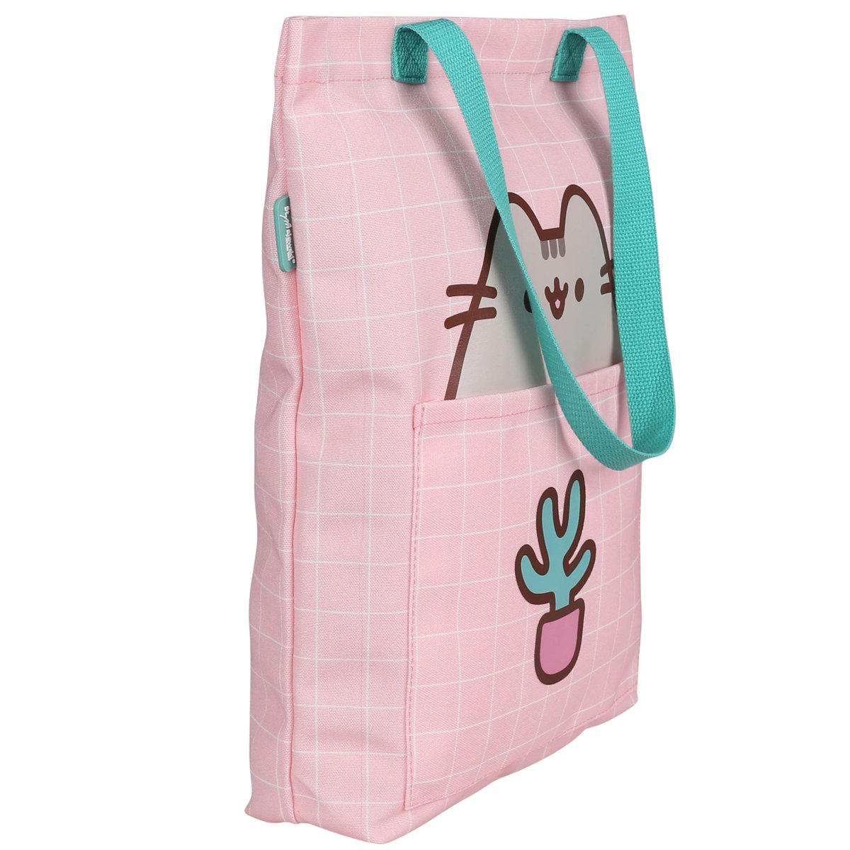 Stylowa torba z uroczym motywem kotka Pusheen na różowym tle w kratkę to idealny dodatek dla dzieci, młodzieży i fanów uroczych akcesoriów.