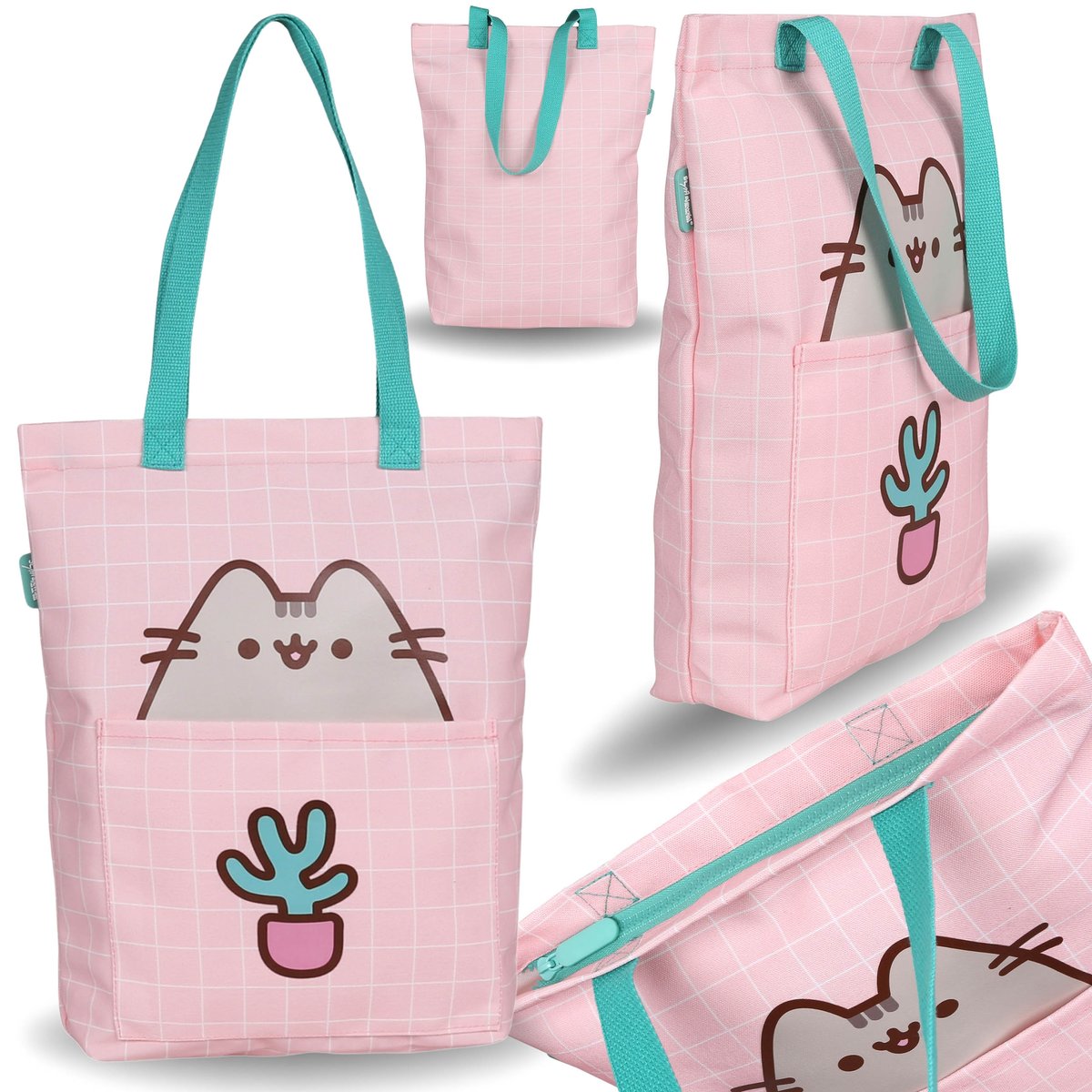 Pusheen POJEMNA torba na ramię, Materiałowa torba na zakupy wielokrotnego użytku, ZAPINANA na zamek 40x32x9 cm