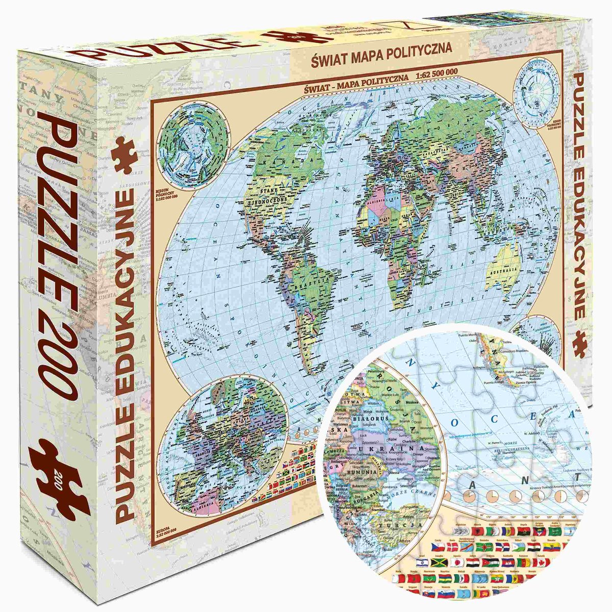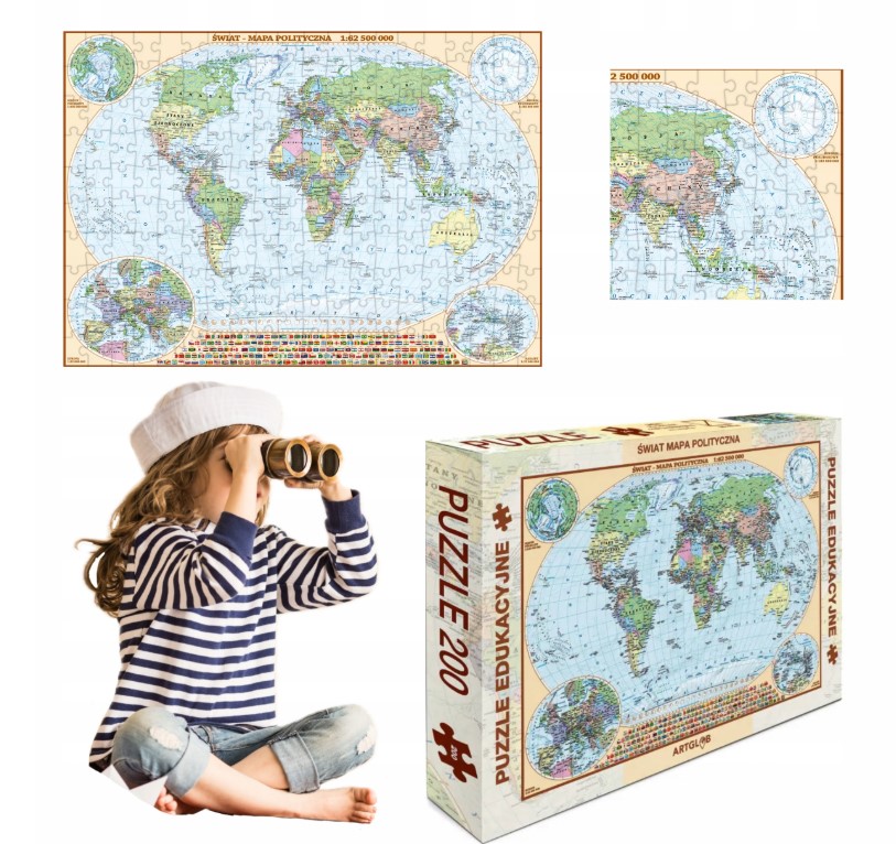 ➡️W Pudełku Znajdziesz 200 puzzli składających się na układankę Mapa Polityczna Świata.