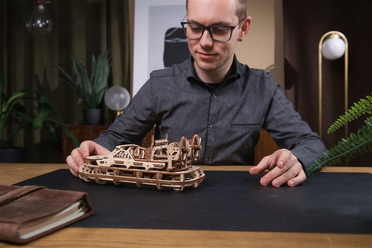 Ugears podnosi w górę dłoń w hołdzie dla zespołów ratunkowych na całym świecie, prezentując model ratowniczego poduszkowca. Która straż pożarna, policja czy zespół ratunkowy nie chciałby mieć tego ratowniczego poduszkowca gotowego do działania po katastrofie?