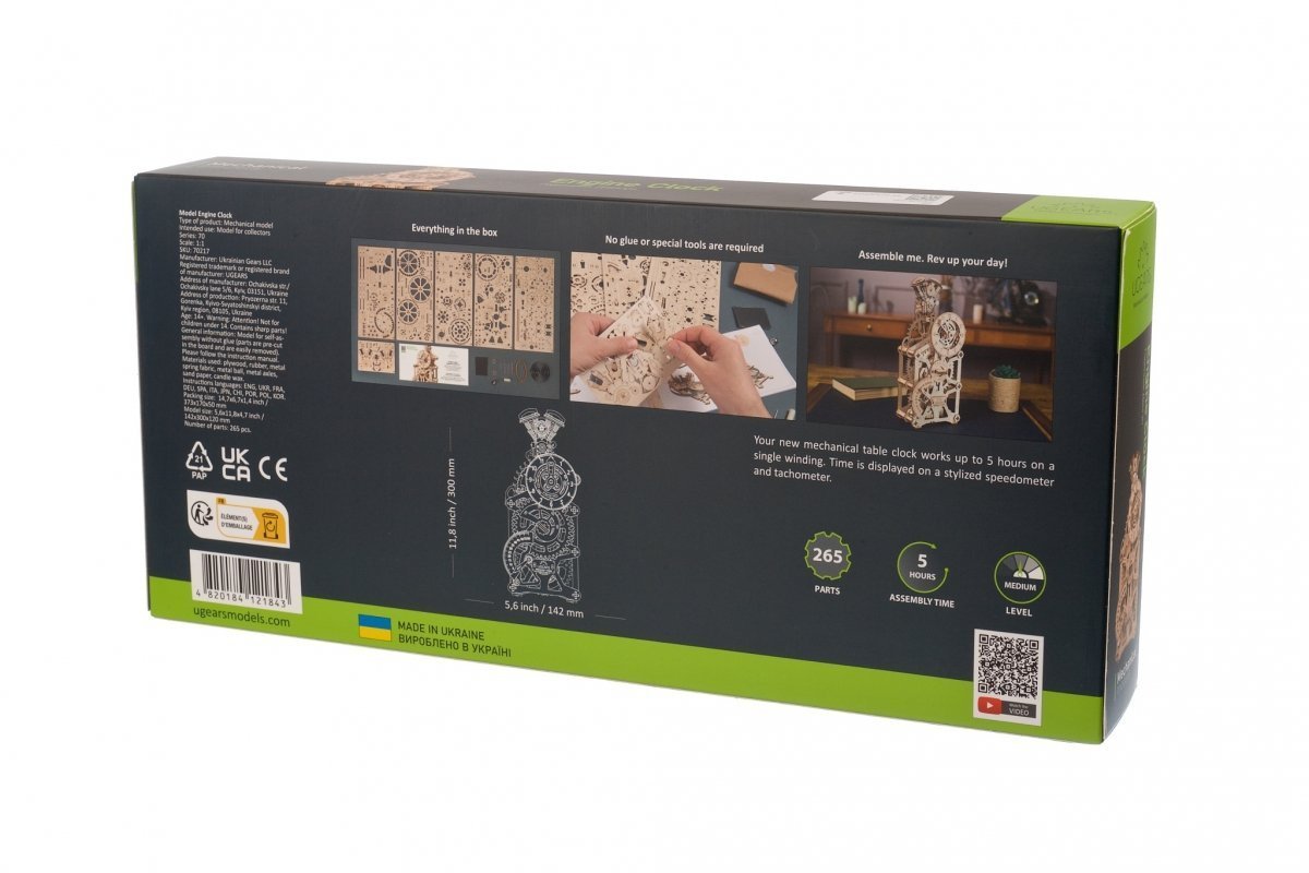 Elegancki Engine Clock UGEARS z pewnością ucieszy każdego miłośnika motoryzacji oraz zegarów i zegarków wśród rodziny i przyjaciół, a także będzie doskonałym prezentem, zarówno w pudełku, jak i już zmontowanym.