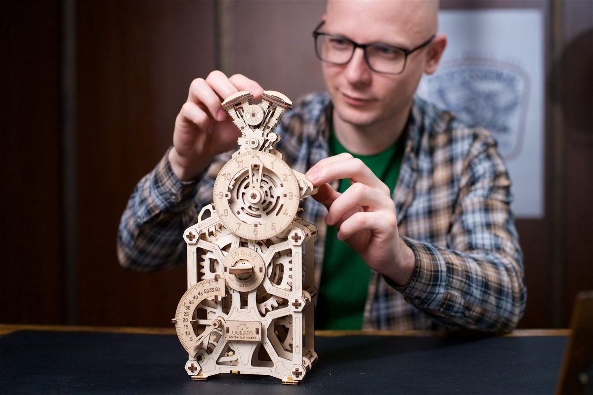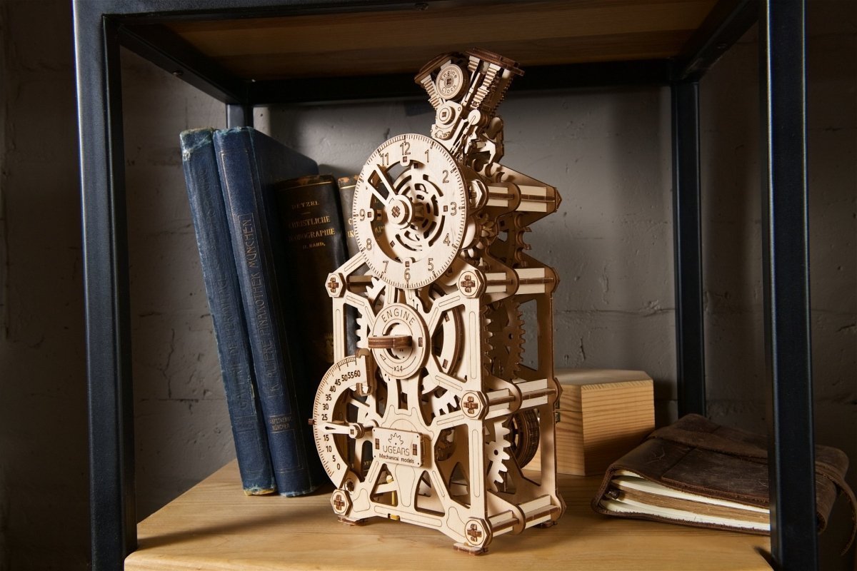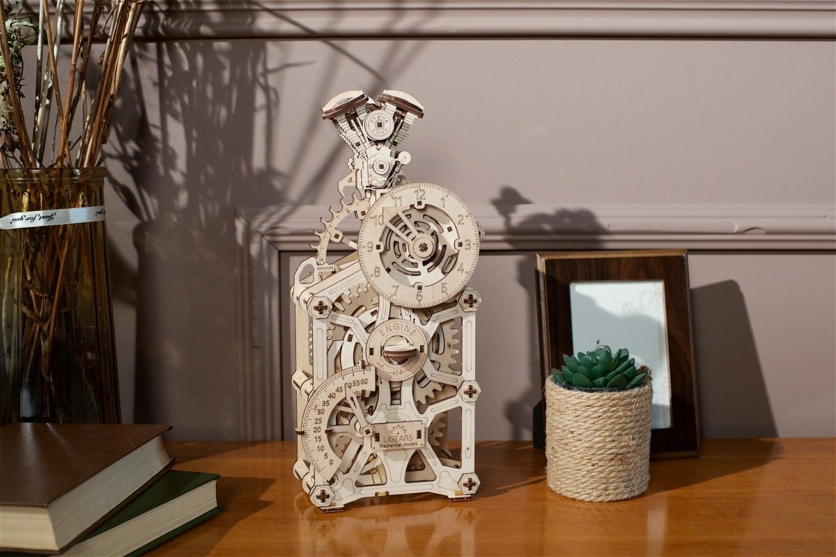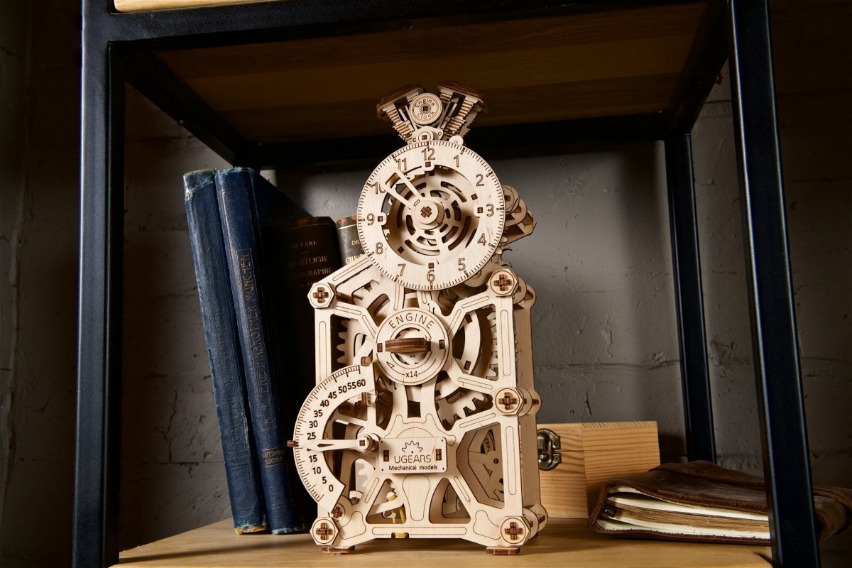 Co mówi się o precyzyjnie dostrojonym silniku – że działa tak, jak w zegarku? Odwróć scenariusz z zegarem UGEARS Engine Clock, precyzyjnie dostrojonym, który działa (i wygląda) jak silnik!