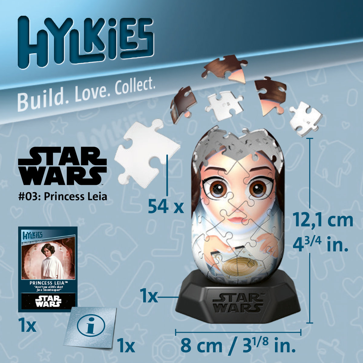 Jeśli kochasz postacie z filmów „Star Wars”, z pewnością oszalejesz na punkcie nowych figurek Hylkies. Twoje ulubione postacie z kultowej serii filmów dostępne do samodzielnego złożenia z puzzli 3D. Wysokiej jakości ponumerowane elementy sprawiają, że można je szybko i łatwo złożyć. Figurki stanowią świetny przedmiot kolekcjonerski wspaniale wyglądający na półce – niezależnie od tego, czy masz tylko jedną, czy całą serię, wszystkie idealnie pasują do siebie.