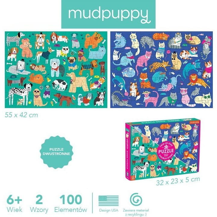 | Nazwa: | Mudpuppy, puzzle, Dwustronne Koty i Psy, 100 el. |