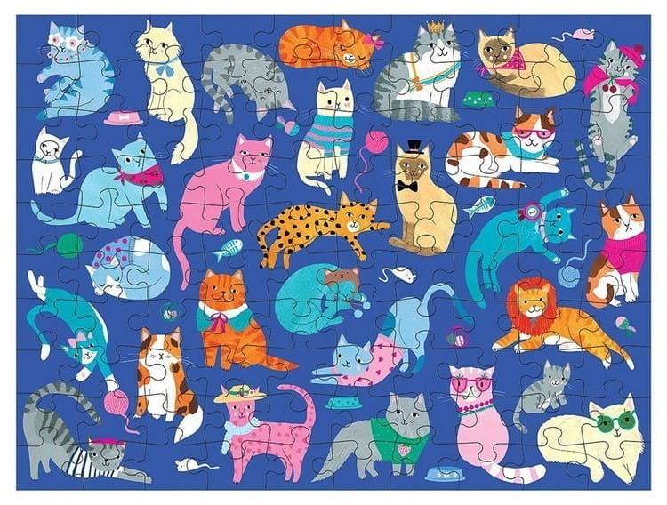 Puzzle dwustronne Koty i psy amerykańskiej marki MUDPUPPY nadają układaniu puzzli nowy wymiar – na samym złożeniu sporego obrazka (o wymiarach 55 x 42 cm) zabawa się bowiem nie kończy.