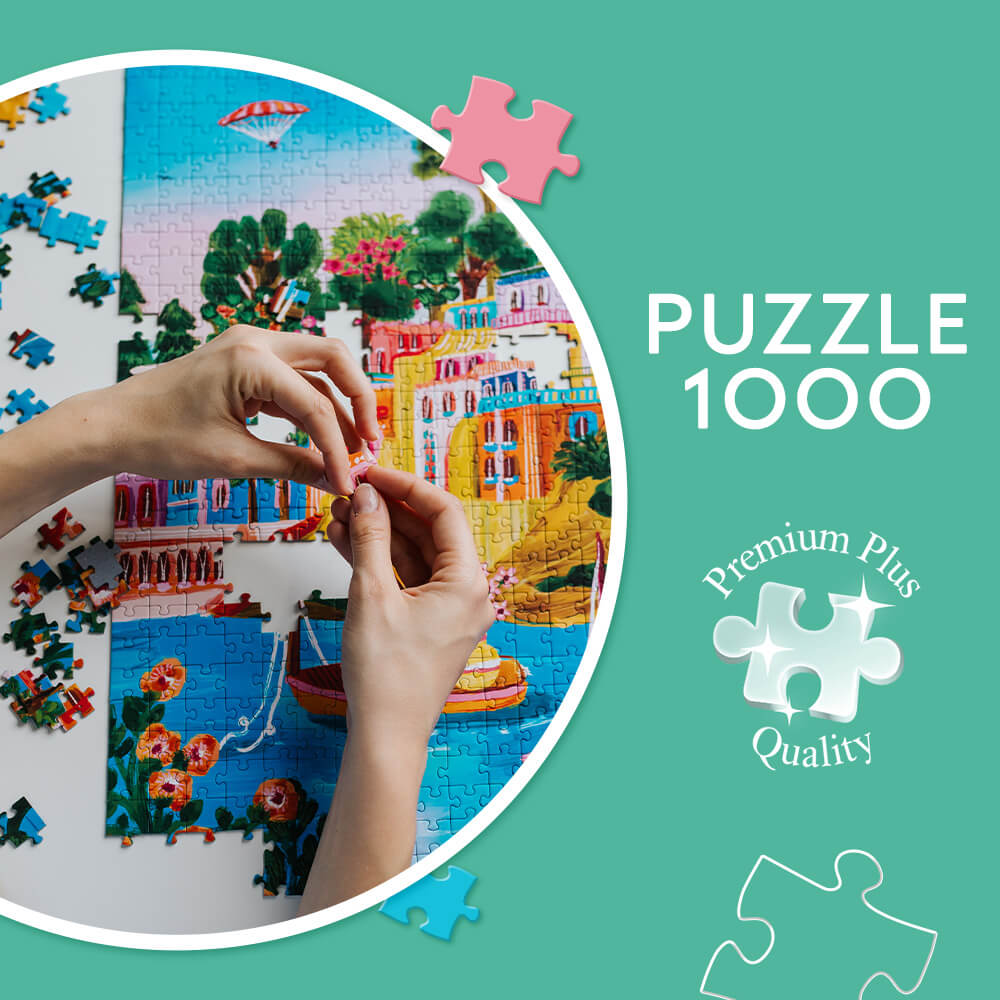 Odkryj obrazy pełne kolorów i ekspresji z serią puzzli Premium Plus Quality, The Art of Colour. Nasze 1000-elementowe puzzle przedstawiają zachwycające dzieła utalentowanych artystek z całego świata. Wśród nich znajdziesz barwny krajobraz Positano i Barcelony autorstwa Nidhi Kachhadiya (Indie), malowniczy widok na grecką wyspę Siros od Millie Putland (UK), a także urocze kotki stworzone przez Sue Cook (UK). Każdy z tych obrazów przeniesie Cię w świat pełen intensywnych kolorów i unikalnych stylów artystycznych, tworząc estetyczną podróż pełną wyzwań.