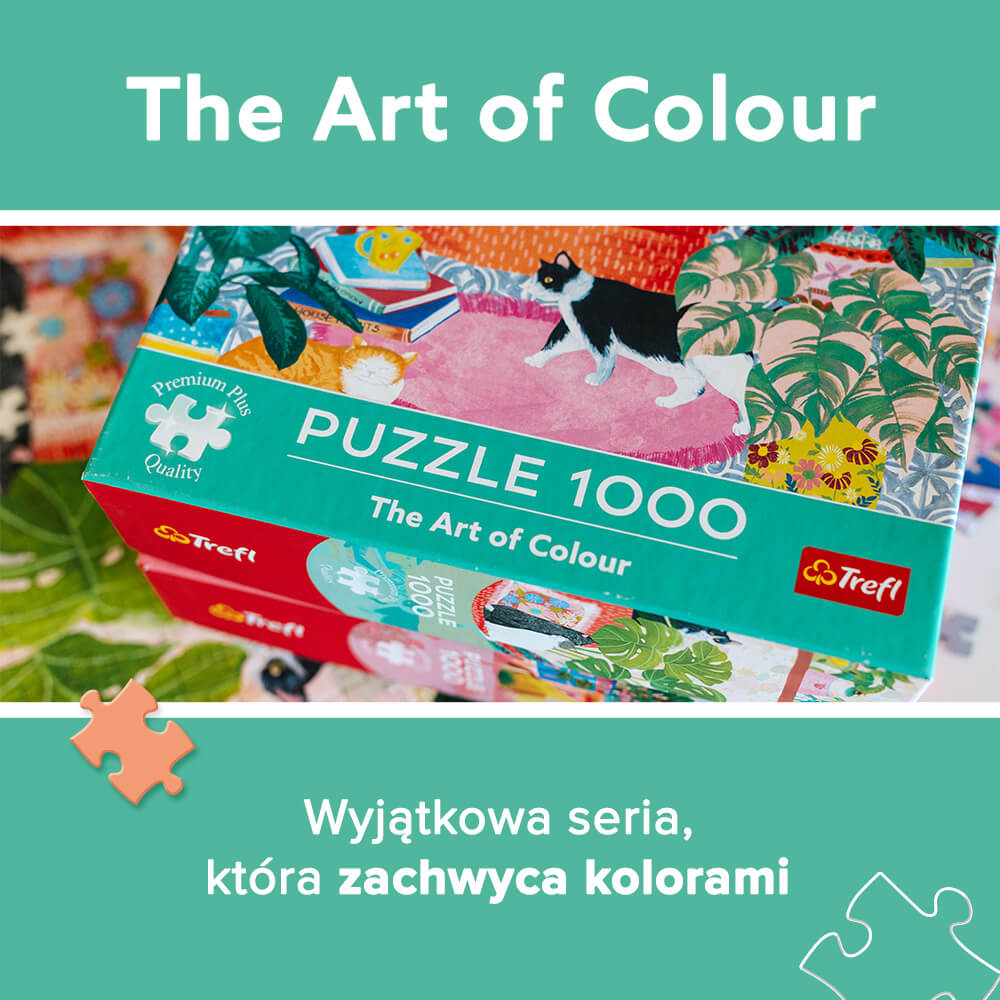 Odkryj obrazy pełne kolorów i ekspresji z serią puzzli Premium Plus Quality, The Art of Colour. Nasze 1000-elementowe puzzle przedstawiają zachwycające dzieła utalentowanych artystek z całego świata. Wśród nich znajdziesz barwny krajobraz Positano i Barcelony autorstwa Nidhi Kachhadiya (Indie), malowniczy widok na grecką wyspę Siros od Millie Putland (UK), a także urocze kotki stworzone przez Sue Cook (UK). Każdy z tych obrazów przeniesie Cię w świat pełen intensywnych kolorów i unikalnych stylów artystycznych, tworząc estetyczną podróż pełną wyzwań.