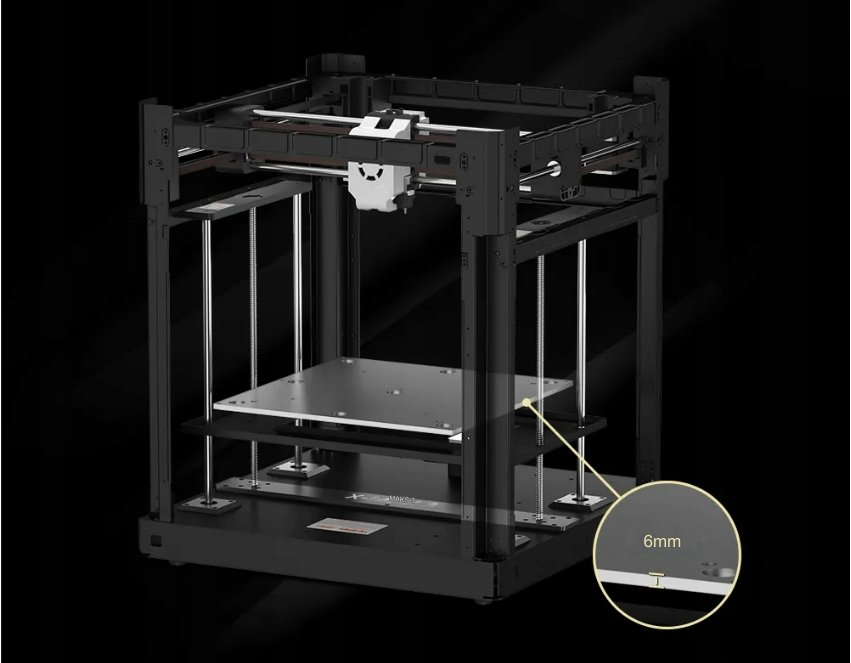 Drukarka posiada dwa zestawy głowic drukujących. Pierwsza z dysz wykonana jest z miedziowego stopu, co zapewnia doskonałą przewodność cieplną, płynne drukowanie i wytrzymałość. Druga dysza wykonana jest ze stali hartowanej, co pozwala na drukowanie materiałów ścieralnych i długotrwałe użytkowanie. Oba zestawy mają maksymalną temperaturę druku wynoszącą 350℃, co zapewnia szeroki zakres zastosowań.