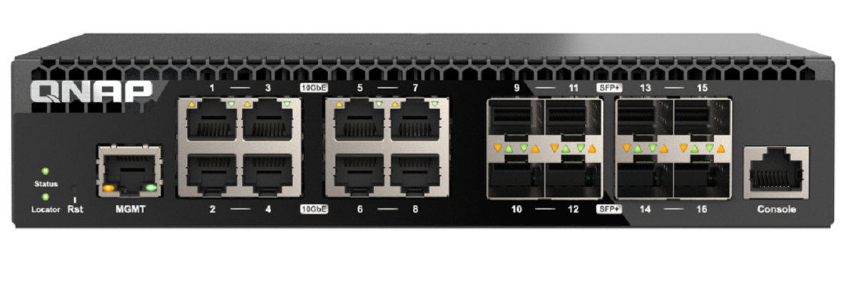 | Nazwa: | Qnap QSW-M3216R-8S8T 16-portowy przełącznik 8x 10GbE SFP+, 8x 10GbE RJ45, 1 x 1GbE do zarządzania |