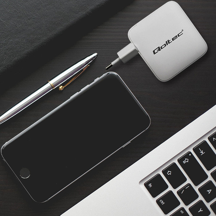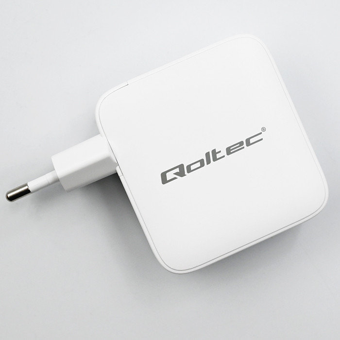 Ładowarka marki Qoltec została wyposażona w najnowocześniejszą technologię ładowania GaN polegającą na zastosowaniu nowego materiału półprzewodnikowego azotku galu. W zależności od rodzaju ładowanego urządzenia ładowarka dobiera odpowiednie napięcie i natężenie w zależności od parametrów baterii, chroniąc ją przed przegrzaniem.