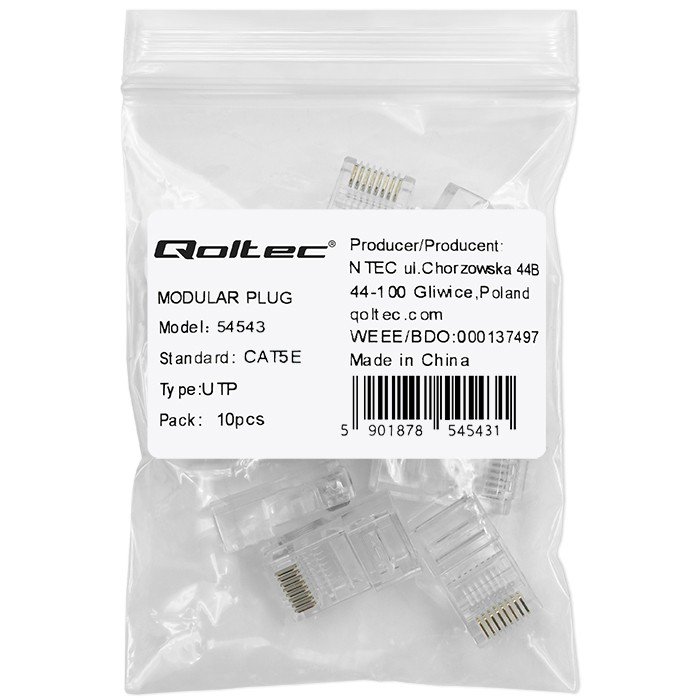 Właśnie zrecenzowałem Qoltec Wtyk przelotowy złącze RJ45 CAT5e UTP Pass Through Pozłacane styki 10 sztuk