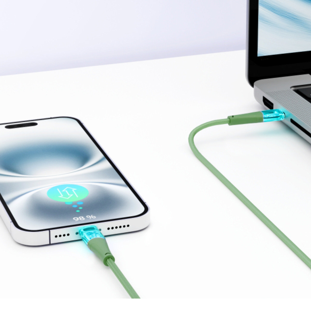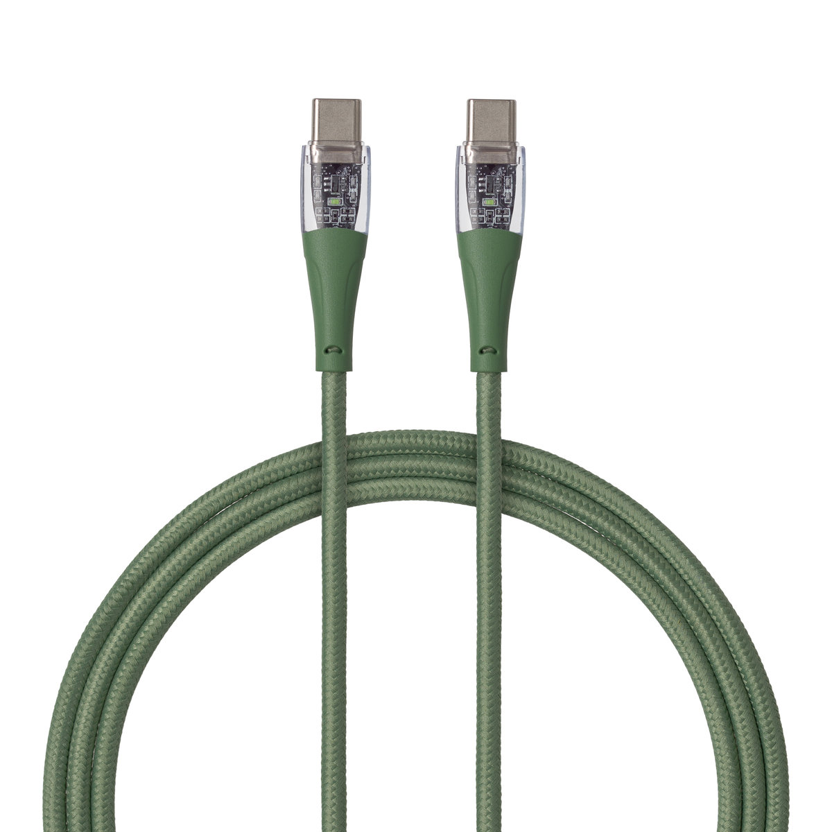 Kabel QUALO Transparent USB-C – USB-C 60W | Nylonowy | Zielony