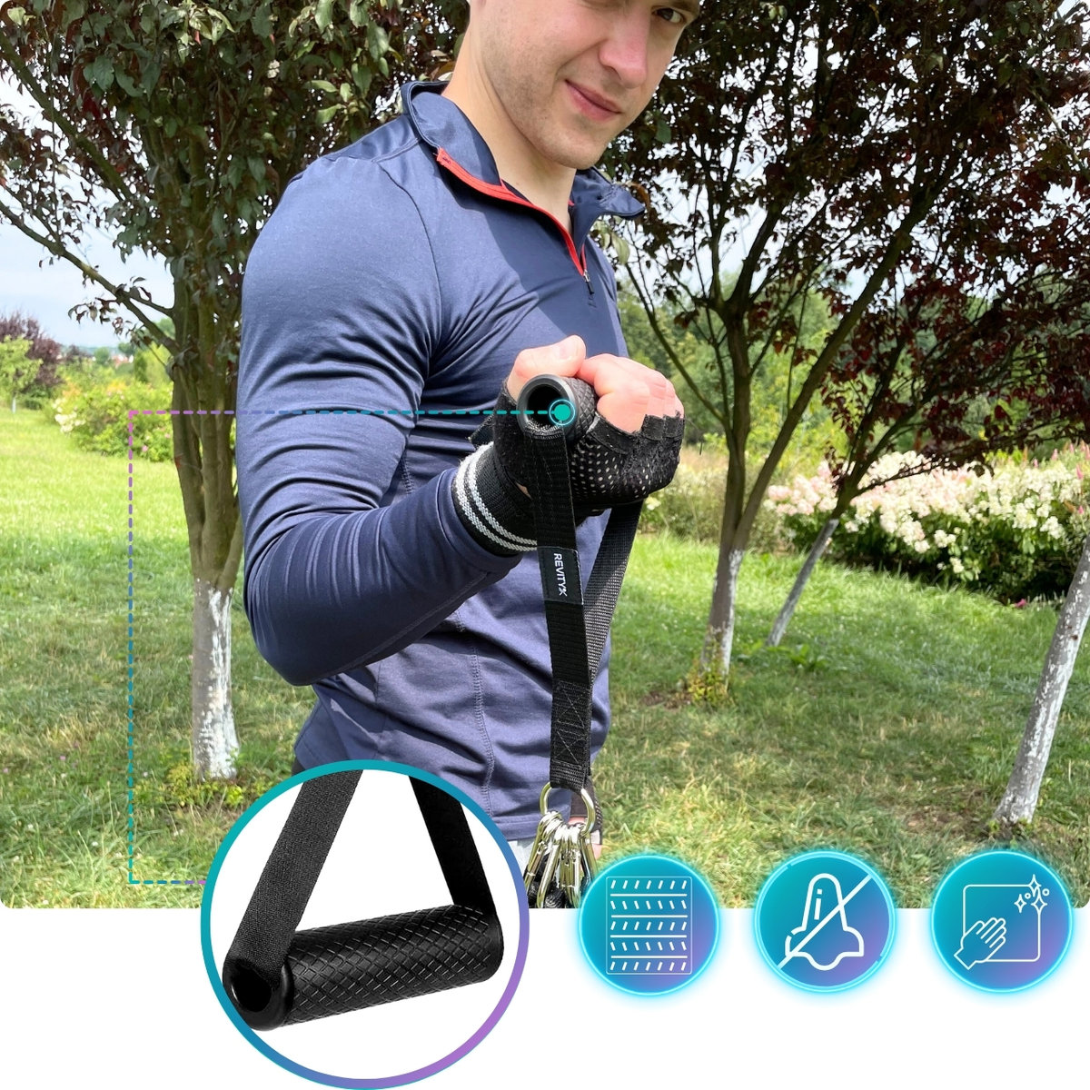 Uchwyty tego samego typu stosujemy w naszych gumach WORKOUT BANDS - Teraz możesz je zakupić osobno i stosować ze swoimi gumami POWER BANDS lub z wyciągiem.