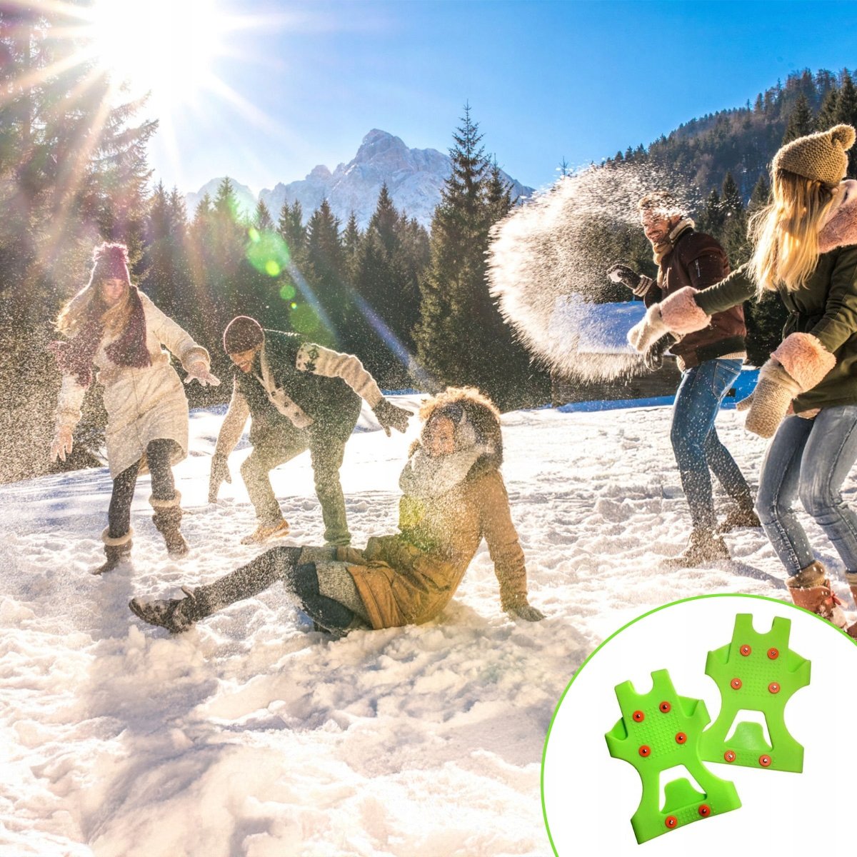 - ANTYPOŚLIZGOWE – elastyczne nakładki na buty, wyposażone zostały w metalowe kolce, które doskonale nadają się na piesze wędrówki po lasach i górach.