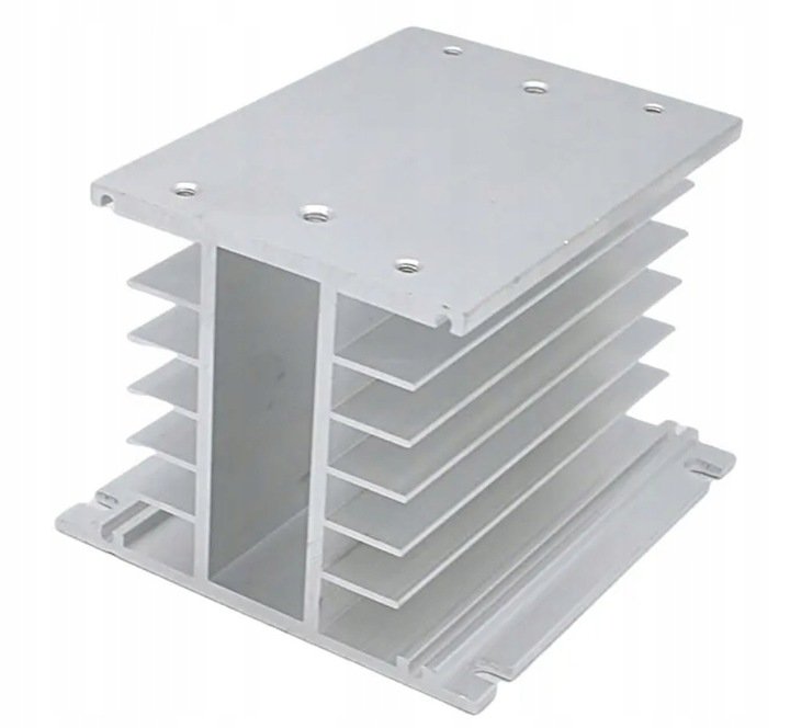 Radiator do przekaźników SSR z otworami do montażu przekaźnika.