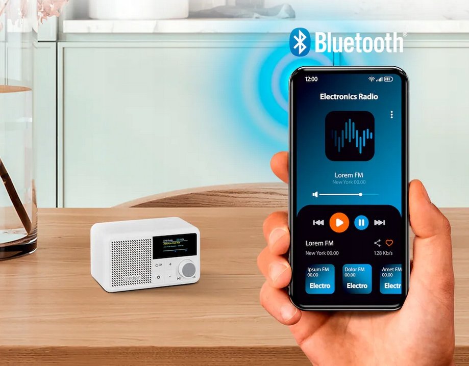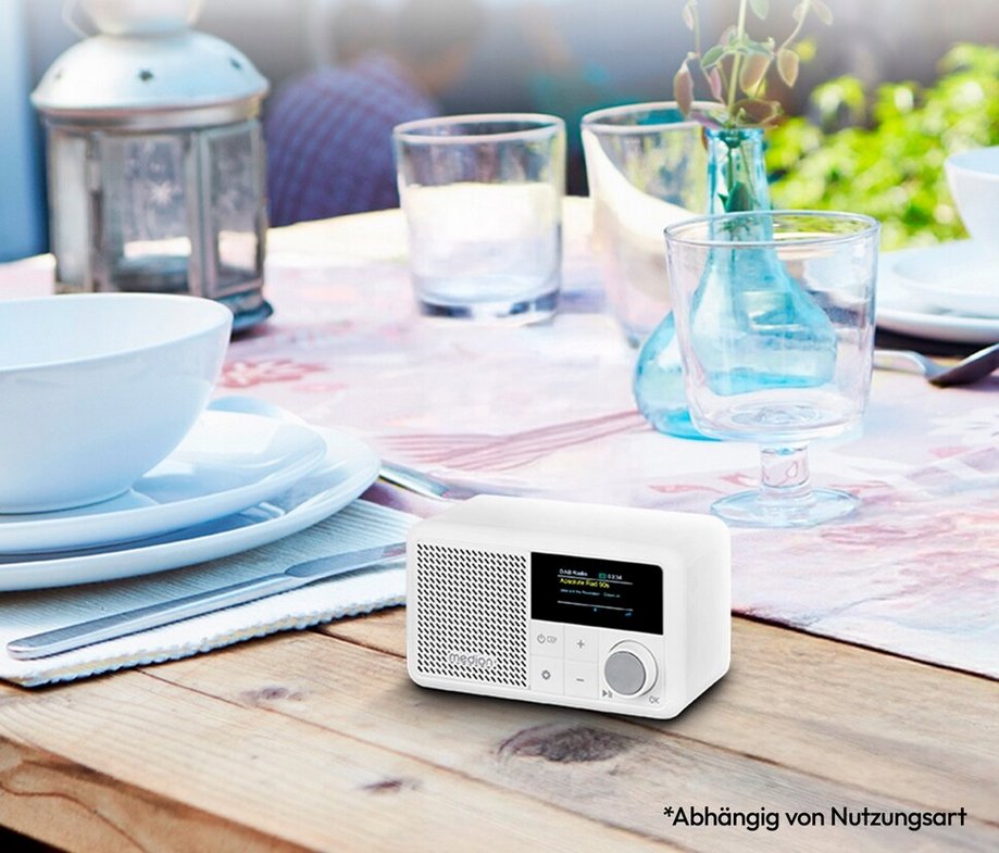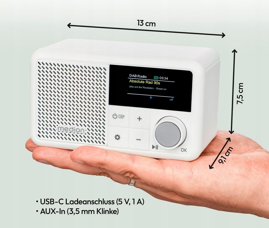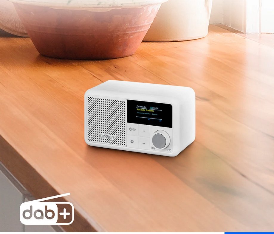 Radio MEDION S66822 DAB+ rozjaśni Twoje codzienne życie! Możesz wybierać między DAB+ i FM – po prostu zapisz swoje ulubione stacje i ciesz się szeroką gamą programów. Jeśli wolisz słuchać własnej listy odtwarzania, szybko podłącz smartfon lub tablet przez Bluetooth. Kolorowy wyświetlacz o przekątnej 1,4 cala oznacza, że nigdy nie stracisz kontroli nad tym, co się dzieje. Dzięki bardzo kompaktowej konstrukcji radio idealnie pasuje do każdego stołu, a nawet na półkę. Dzięki ochronie przed zachlapaniem IPX1 idealnie nadaje się do kuchni, łazienki lub w podróży. Tam, dzięki wbudowanej baterii o czasie pracy do 6,5 godzin, nie rozładuje się tak szybko, co czyni je idealnym towarzyszem – czy to na śniadaniu, czy w podróży.