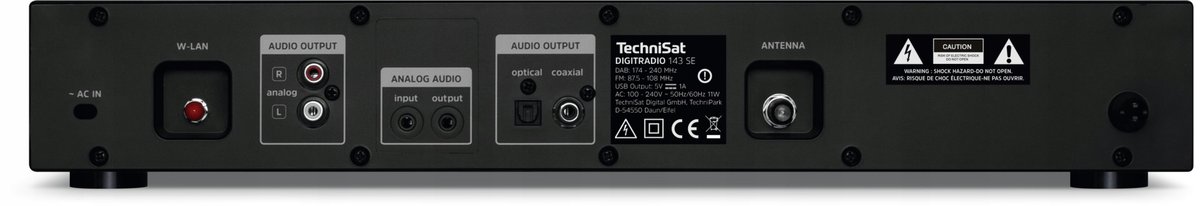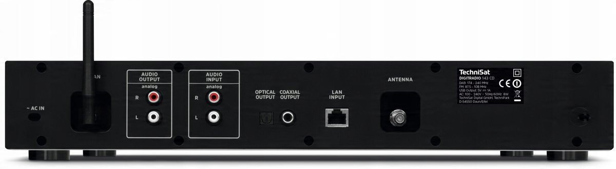 Urządzenie charakteryzuje uniwersalny wymiar dla systemów muzycznych 435 x 75 x 290 mm (sz. x wys. x gł.). Technisat DigitRadio 143 pozwala uzupełnić i rozszerzyć posiadany już sprzęt HiFi oraz zestaw kina domowego, o odbiór cyfrowego radia DAB+, FM oraz odtwarzacz MP3. Złącze USB umożliwia podłączenie dysku zewnętrznego i odtwarzanie muzyki z plików MP3.