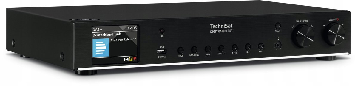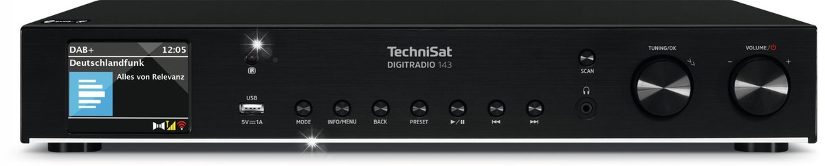 Technisat DigitRadio 143 (następca modelu Digitradio 140) to wysokiej jakości cyfrowy tuner UKF/FM oraz DAB+ i odtwarzacz MP3. Poprzez transmisję audio Bluetooth odtwarza utwory, słuchowiska radiowe, podcasty i wiele więcej ze smartfonu lub tabletu. Menu w języku polskim.