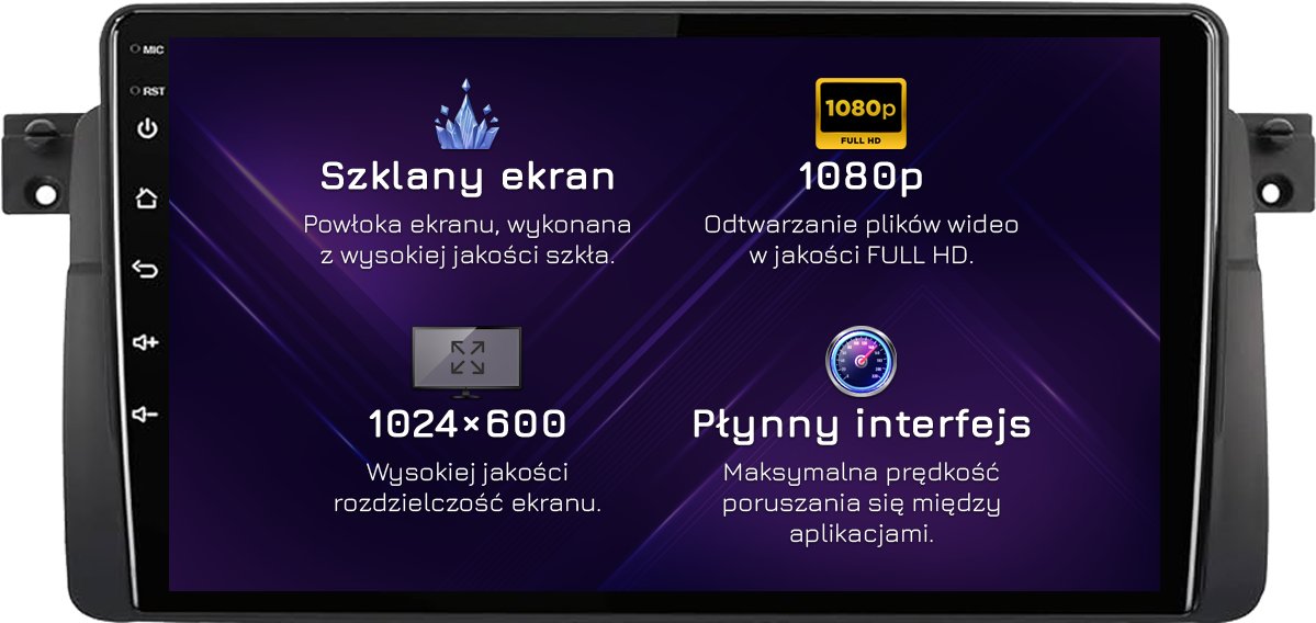 ⚠️Rozdzielczość: 1024px x 600px = Wide Super VGA. Najpopularniejszy standard wyświetlania obrazu w przypadku radioodbiorników z górnej półki. Filmy odtwarzane są w jakości HD.